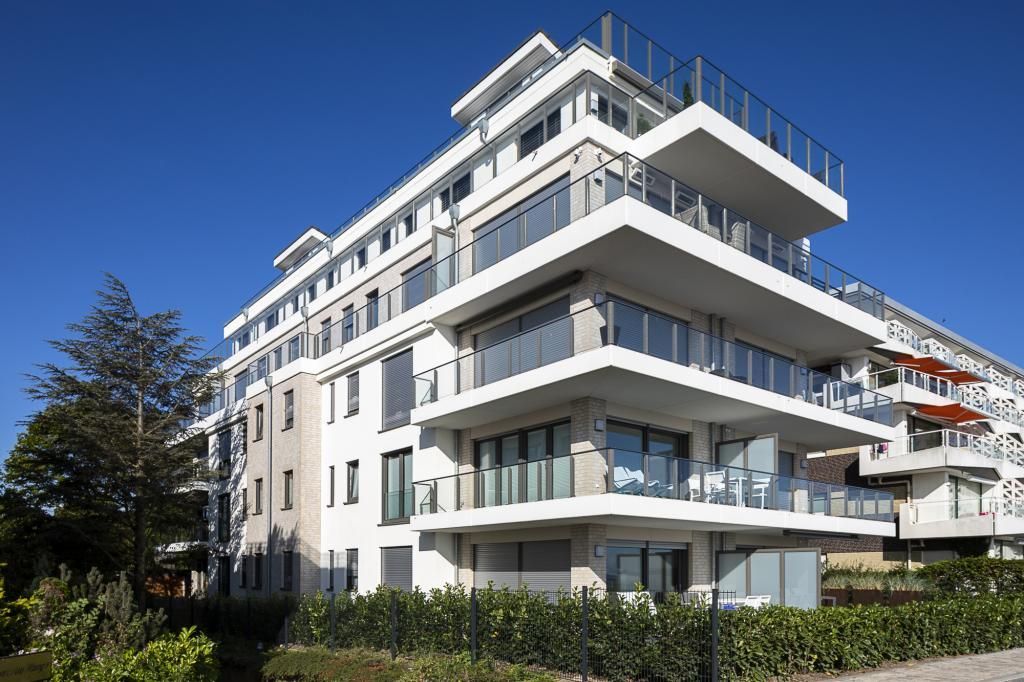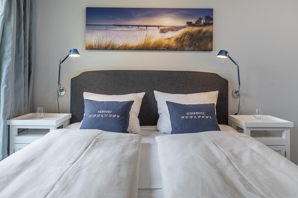 Schöne 3-Zi-Wohnung, ca. 70 m²,  für bis zu 4 Personen in direkter Strandlage mit Teil-Meerblick, besonders hochwertiger Ausstattung im New-England-Style, Whirlpool und großem Sonnen-Balkon.