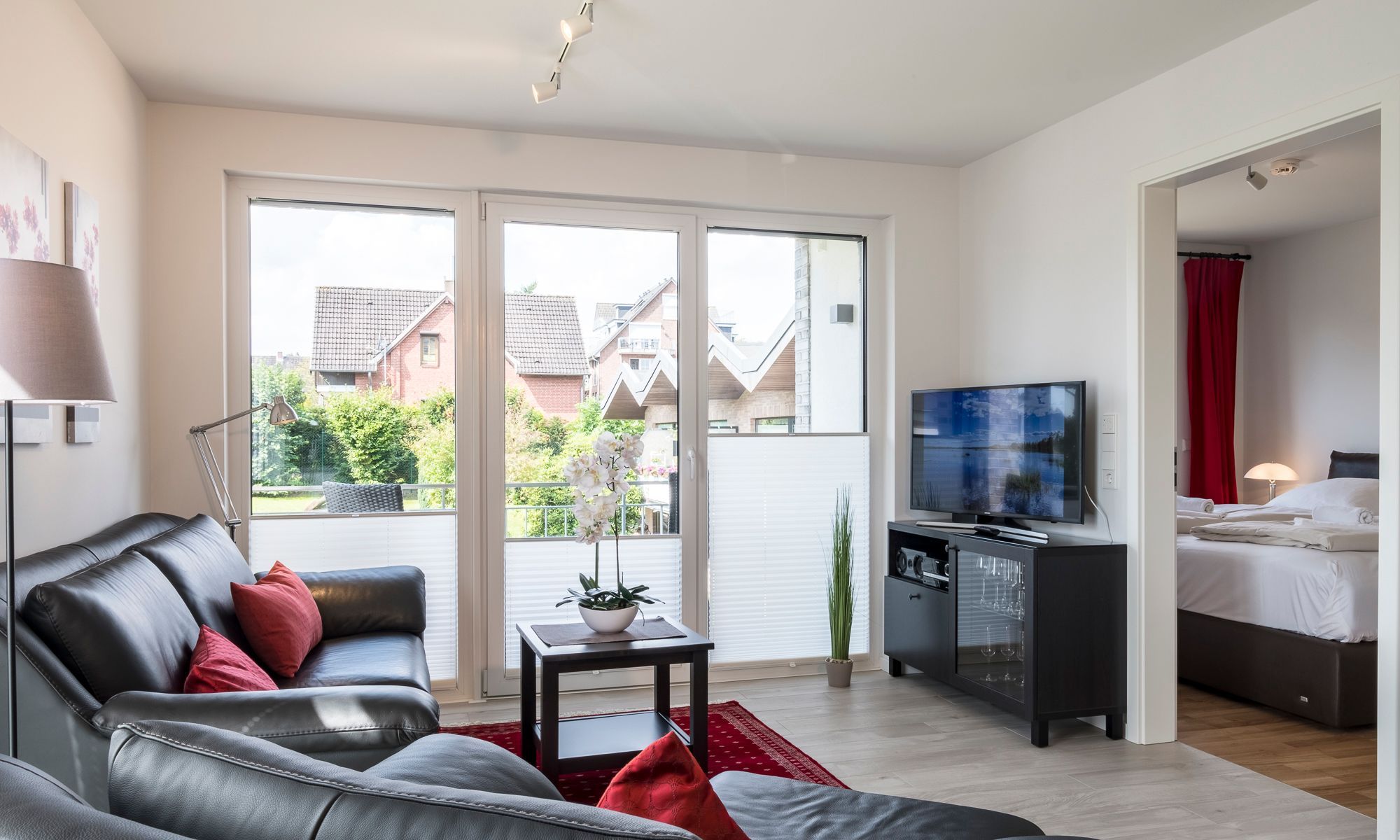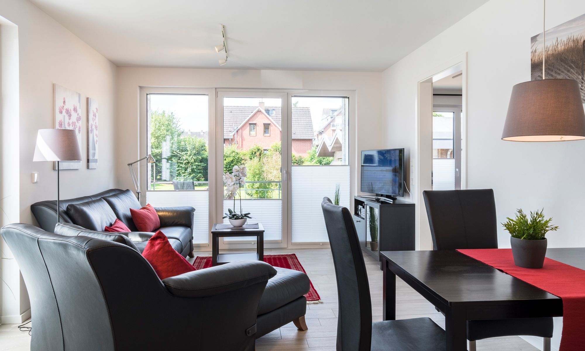 Exklusive 2-Zimmer-Ferienwohnung, ca. 50 m², im ersten Obergeschoss gelegen, Fahrstuhl vorhanden, inkl. Tiefgaragenstellplatz (Durchfahrtshöhe 2,08 m), WLAN, Strandkorb (saisonbedingt 15.05. 15.09.) am nahegelegenen Strand.