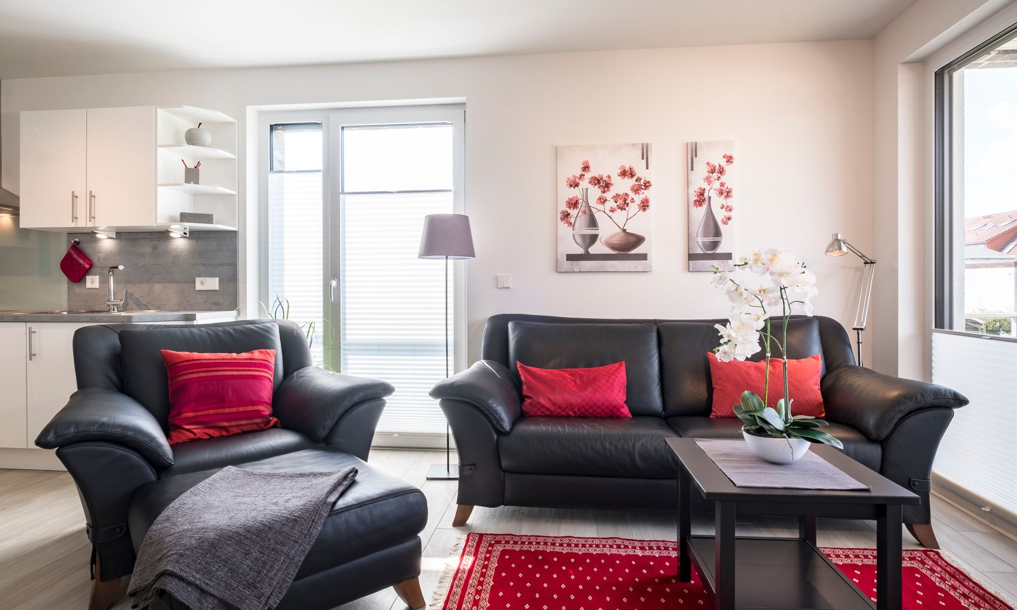 Die ganze Wohnung ist mit einer Fußbodenheizung sowie mit einem Sicht- bzw. Lichtschutz an allen Fenstern und zusätzlichen elektrischen Rollläden ausgestattet. Der überdachte Balkon lädt mit seinen bequemen und ansprechenden Sesseln zum Verweilen ein.