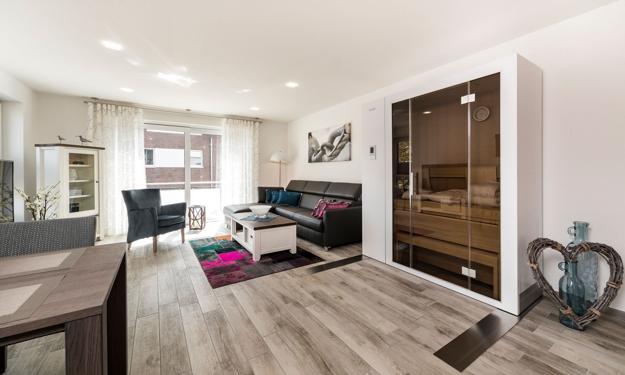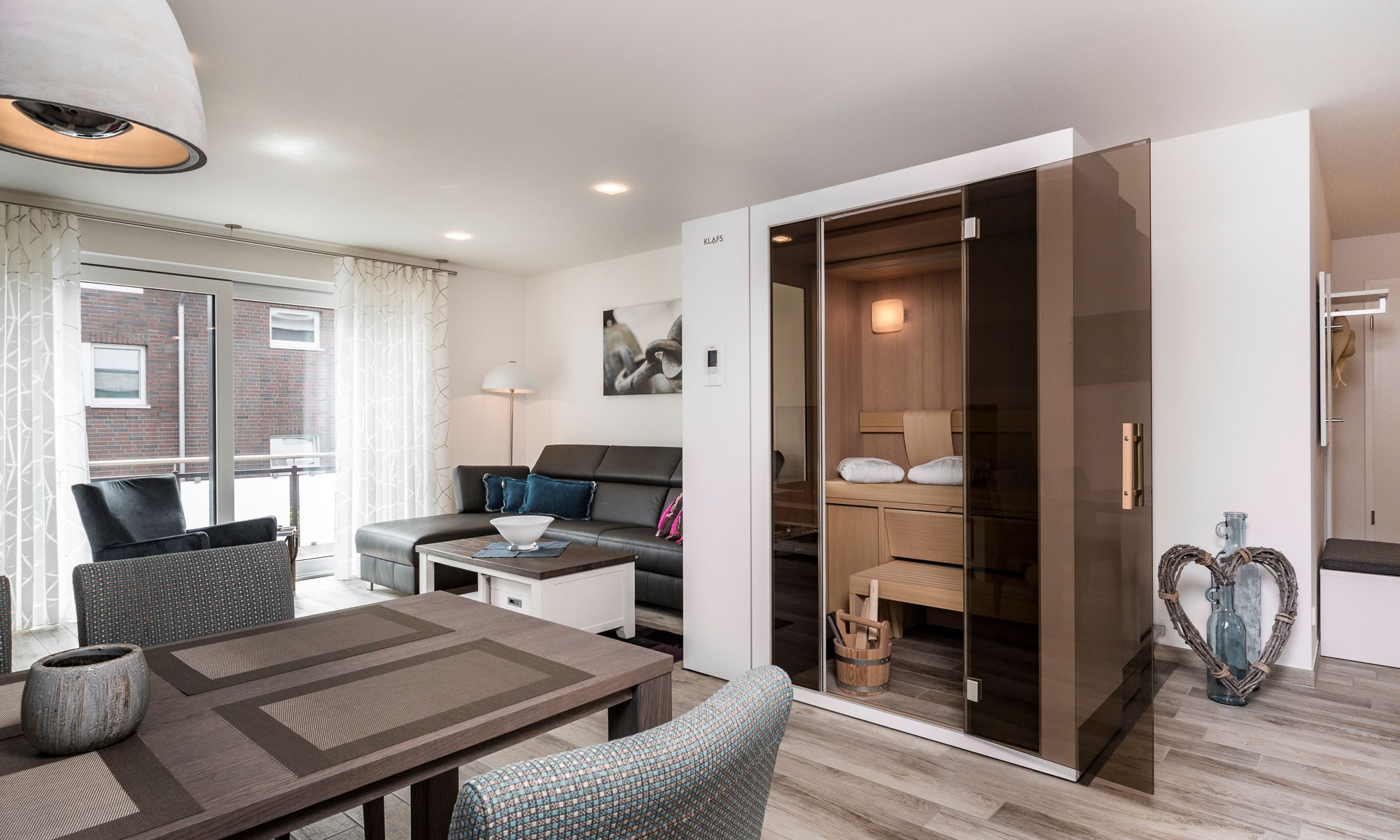 Diese Ferienwohnung lässt Sie rundum verwöhnen. Die Sauna im Wohnzimmer ist ein tolles Extra! Großer Südbalkon mit Tisch und Stühlen lässt Sie Ihren Urlaub genießen und lädt zum Träumen ein. In der Strandkorbsaison (15.05. 15.09.) finden Sie für die Zeit Ihres Aufenthaltes einen kostenlosen Strandkorb am Strand. Alle Fenster sind mit elektrischen Außenrollläden ausgestattet. Diese Ferienwohnung ist eine Nichtraucherwohnung. Für Raucher steht gerne der Balkon zur Verfügung vielen Dank für Ihr Verständnis. Haustiere sind ebenfalls nicht erlaubt. Sie eignet sich daher besonders gut für Allergiker.