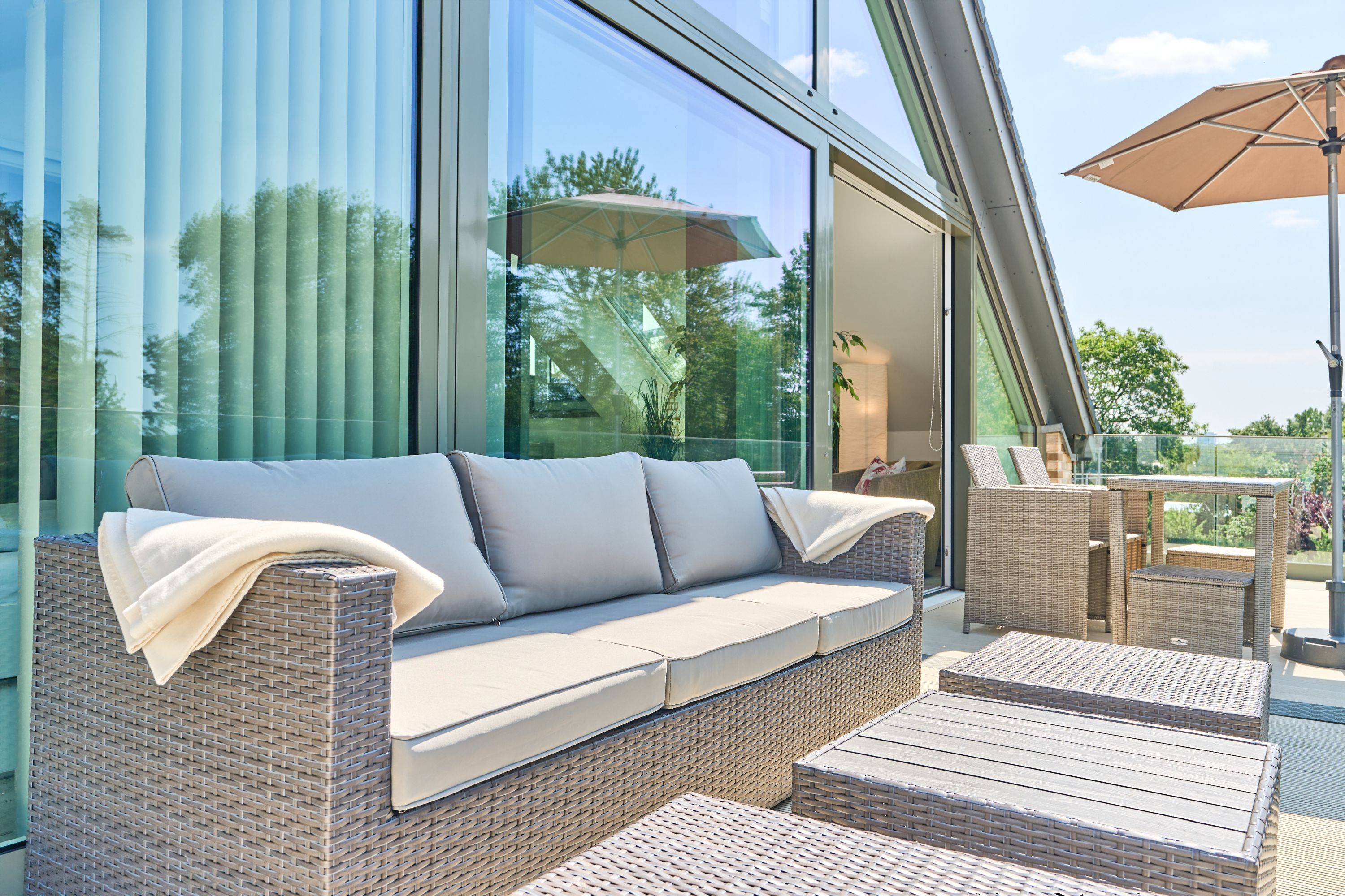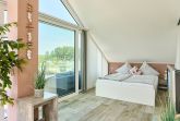 Es erwartet Sie schon beim Betreten der Wohnung ein weiter Blick in die Ferne. Diese Traumwohnung ist durch die bodentiefen Fenster absolut hell und lichtdurchflutet, selbstverständlich ist bei Bedarf ein Sichtschutz vorhanden. Der lichtdurchflutete Raum bietet Ihnen einen Essbereich mit Küchenzeile, einen gemütlichen Wohnbereich sowie einen Schlafbereich mit einem Doppelbett (1,60 x 2,00 m, Einzelmatratzen). Die Küche ist komplett ausgestattet und lässt keine Wünsche offen. Neben einem Flach-TV steht Ihnen selbstverständlich kostenloses WLAN zur Verfügung. Das Tageslicht-Bad verfügt über eine bodentiefe Dusche und einen Handtuchheizkörper sowie Fußbodenheizung.