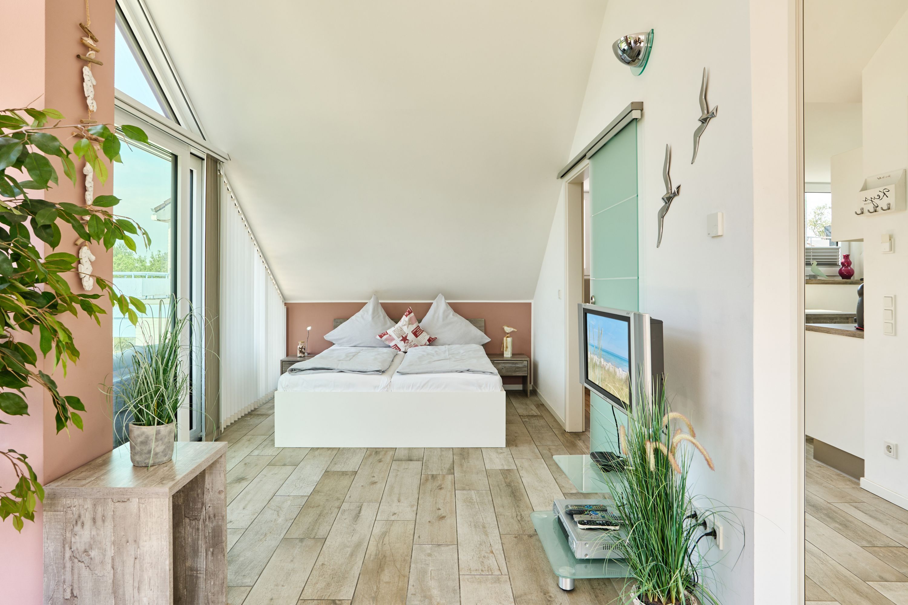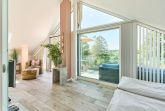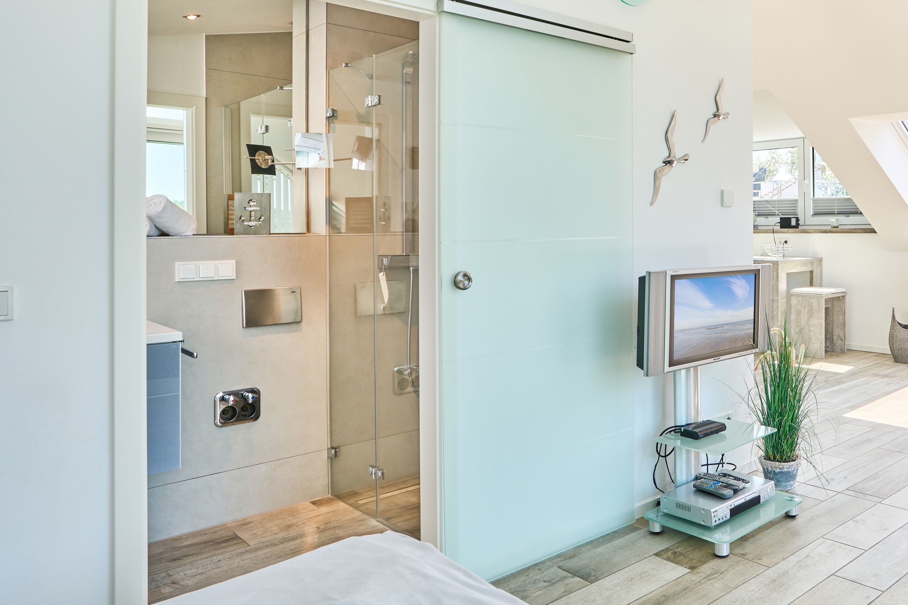 Strandallee 100, direkt in erster Lage, mit herrlichem, weitem Blick, in Westlage. Exklusive 1-Zimmer-Ferienwohnung, ca. 35m², auf einer Ebene, im 2. OG, Tageslicht-Duschbad, WLAN, Strandkorb gegenüber am Strand (saisonbedingt 15.05. 15.09.), Kfz-Außenstellplatz