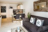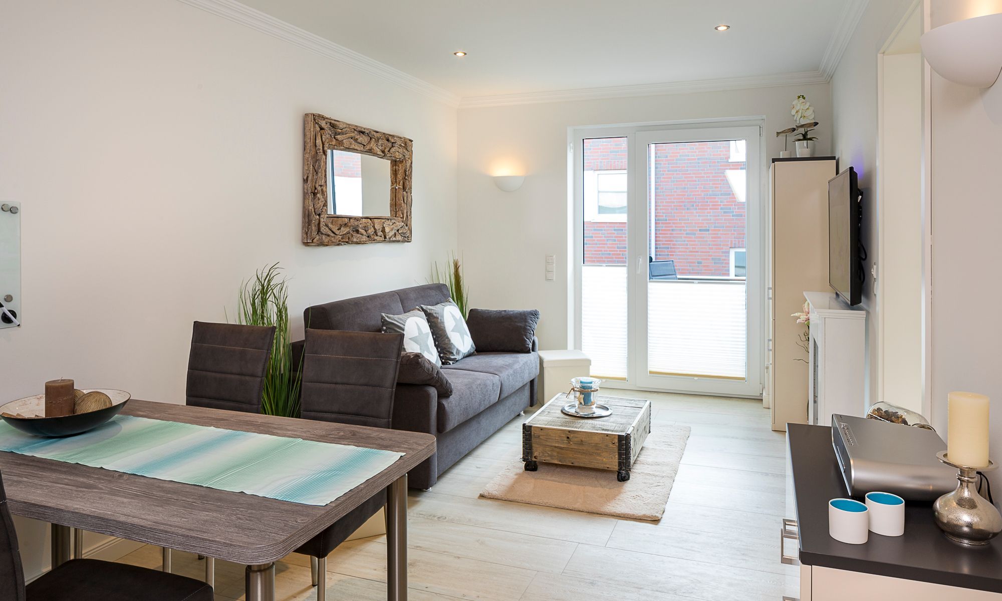 Diese schöne Ferienwohnung ist durchgehend mit einem Bodenbelag in angenehmer Holzoptik und Fußbodenheizung ausgestattet. Der Wohnraum verfügt über einen Ess- sowie einen gemütlichen Sitzbereich. Die Couch lässt sich mit nur wenigen Handgriffen in eine bequeme Schlafcouch (1,40 x 2,00m) umfunktionieren. Neben dem Flachbildfernseher steht Ihnen eine moderne HiFi-Anlage zur Verfügung. Kostenloses WLAN ist selbstverständlich. Die offene Küche ist ausgestattet mit u.a. Geschirrspüler, Backofen und Induktionskochfeld, Kühlschrank mit Gefrierfach. Neben einer Filterkaffeemaschine steht zusätzlich eine Nesprosso-Kapselmaschine für Sie bereit. Das Schlafzimmer ist mit einem Kleiderschrank und einem komfortablen Boxspringbett (1,80 x 2,00m) sowie einem Flachbildfernseher ausgestattet. Ein schönes Badezimmer mit bodentiefer Dusche mit Regendusche, zusätzlichem Handtuchheizkörper, Föhn und Waschmaschine erwartet Sie. Ein Abstellraum gehört ebenfalls zur Wohnung.