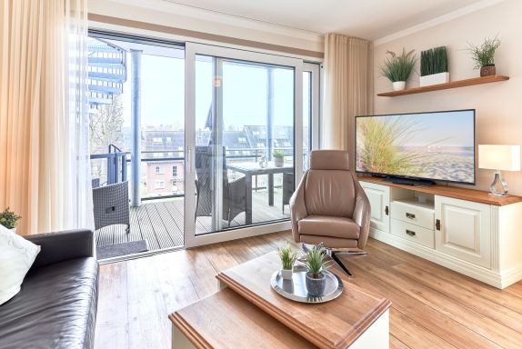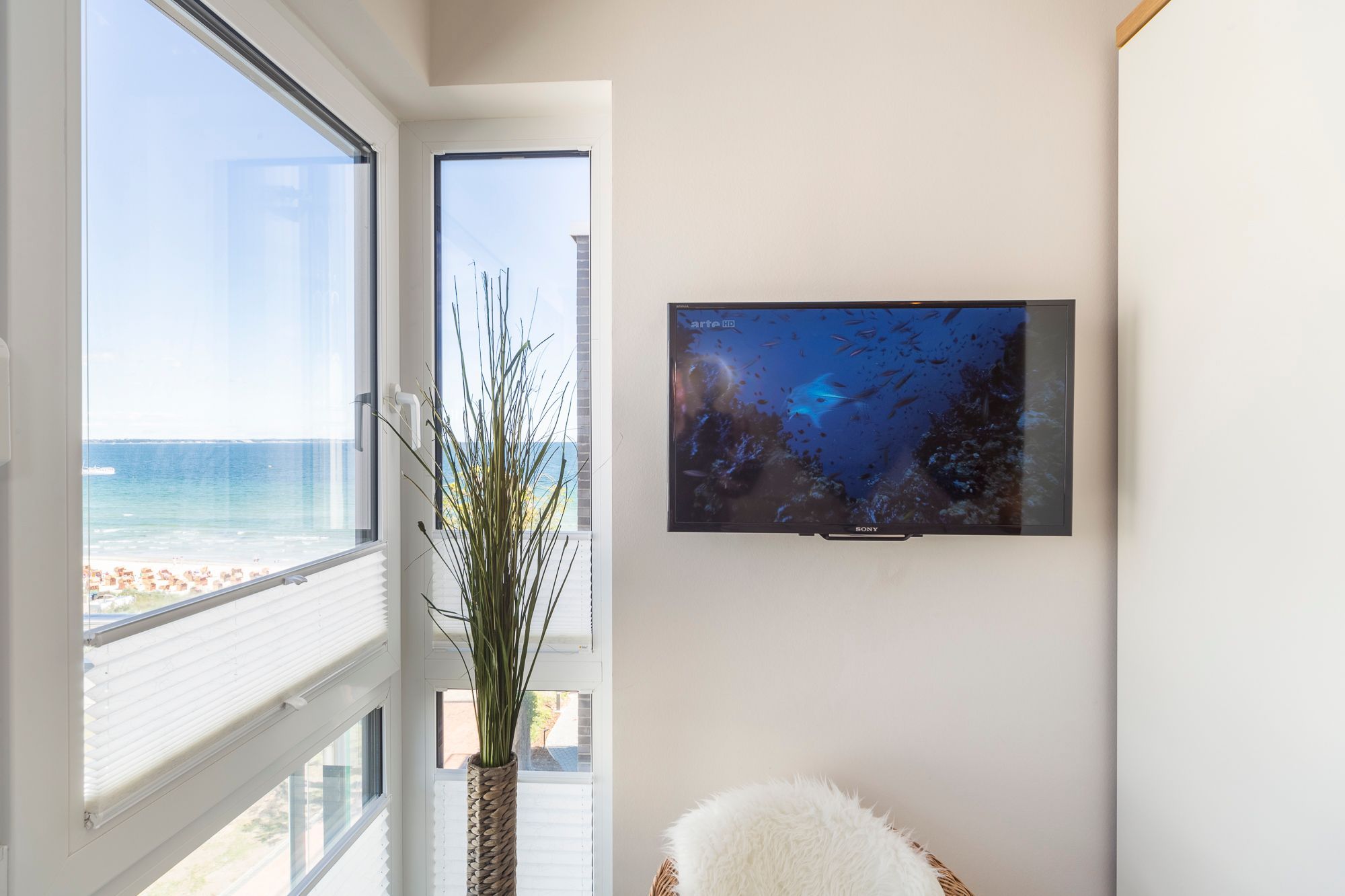 Hier wohnen Sie auf Wolke 7: Teilmeerblick, Fußbodenheizung, Außenrollläden. Schlafzimmer Boxspringbett (180x200m). Bad mit Fenster, bodengleicher Dusche, mit Kopfbrause und Handbrause, Handtuchheizkörper, Bad-Radio. Wohnbereich mit Relax-Sessel, hochwertigem Schlafsofa (1,60 x 2,00m), Technikhighlights: Sony Curved HD, Bose-Sound-System. WLAN, Strandkorb gegenüber am Strand (saisonbedingt 15.05. 15.09.).