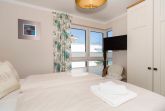 Träumen Sie schon …? Alles wurde mit viel Liebe bis ins Detail ausgestattet. Der Fußboden in einem warmen Plankendesign erstreckt sich über den gesamten Wohnbereich (außer das Badezimmer ). Das Schlafzimmer bietet Ihnen, auch vom bequemen Boxspringbett (1,80x2,00 m) aus, einen herrlichen Blick auf die Ostsee. Der Schlafzimmerschrank hat Platz für Ihre Garderobe. Der HD-Flach-TV an der Wand verfügt über einen Schwenkarm. Mit den Außenrollläden lässt sich der Raum für einen erholsamen Schlaf verdunkeln. Im Flur befindet sich eine Flur-Garderobe mit einem Ganzkörperspiegel.