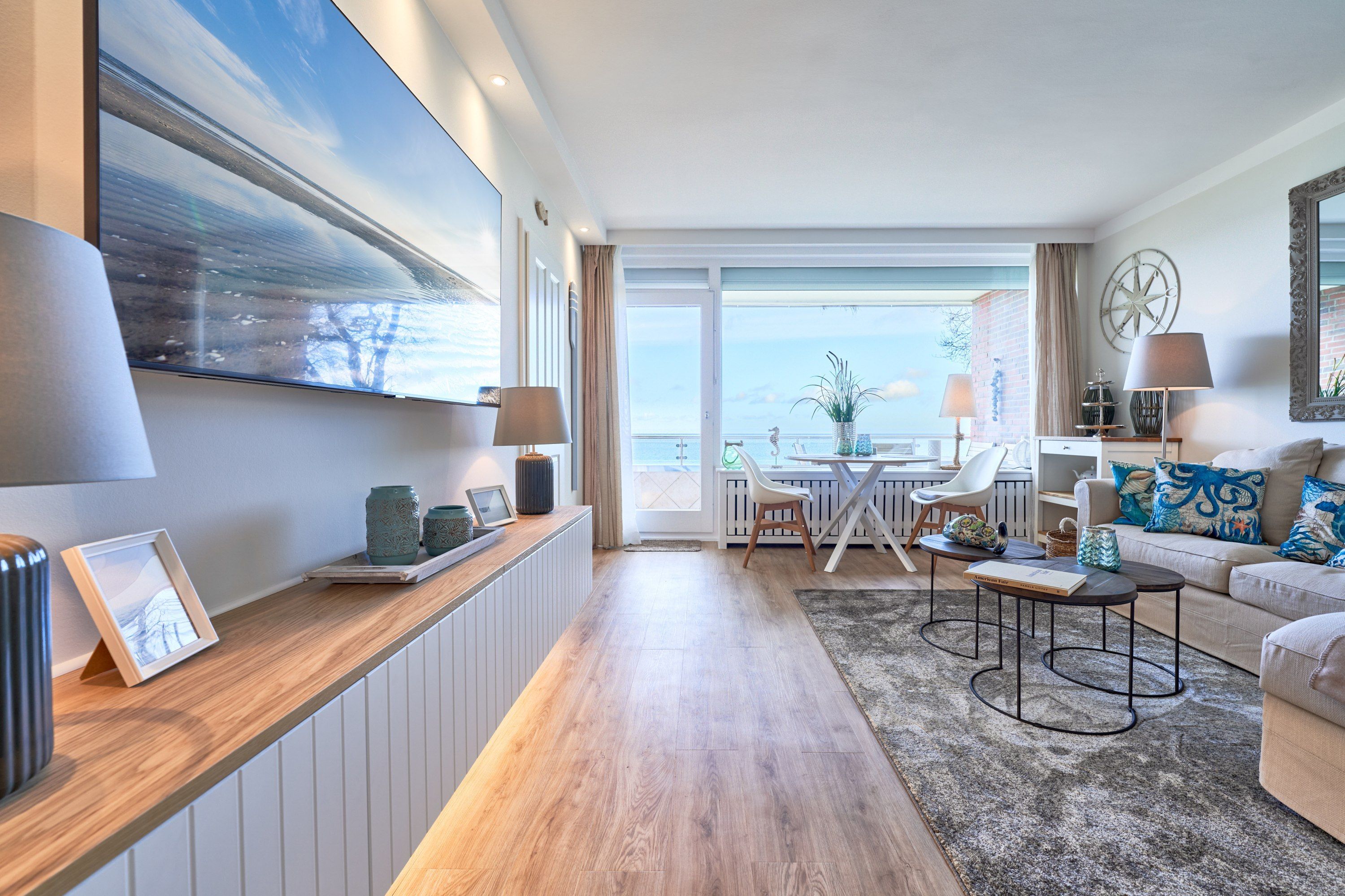 Bereits im Flur können Sie schon auf die Ostsee blicken und weiter Aus beiden Räumen haben Sie Ostseeblick! In dieser traumhaften Wohnung werden Sie sich gleich wohlfühlen. Das Wohnzimmer bietet Ihnen eine angenehme Atmosphäre. Lichtkonzept / dimmbar für jeden Geschmack. Hochleistungs-WLAN-Flat mit 250 MBit/s, TV UHD 65 Zoll, Magenta TV inkl.
