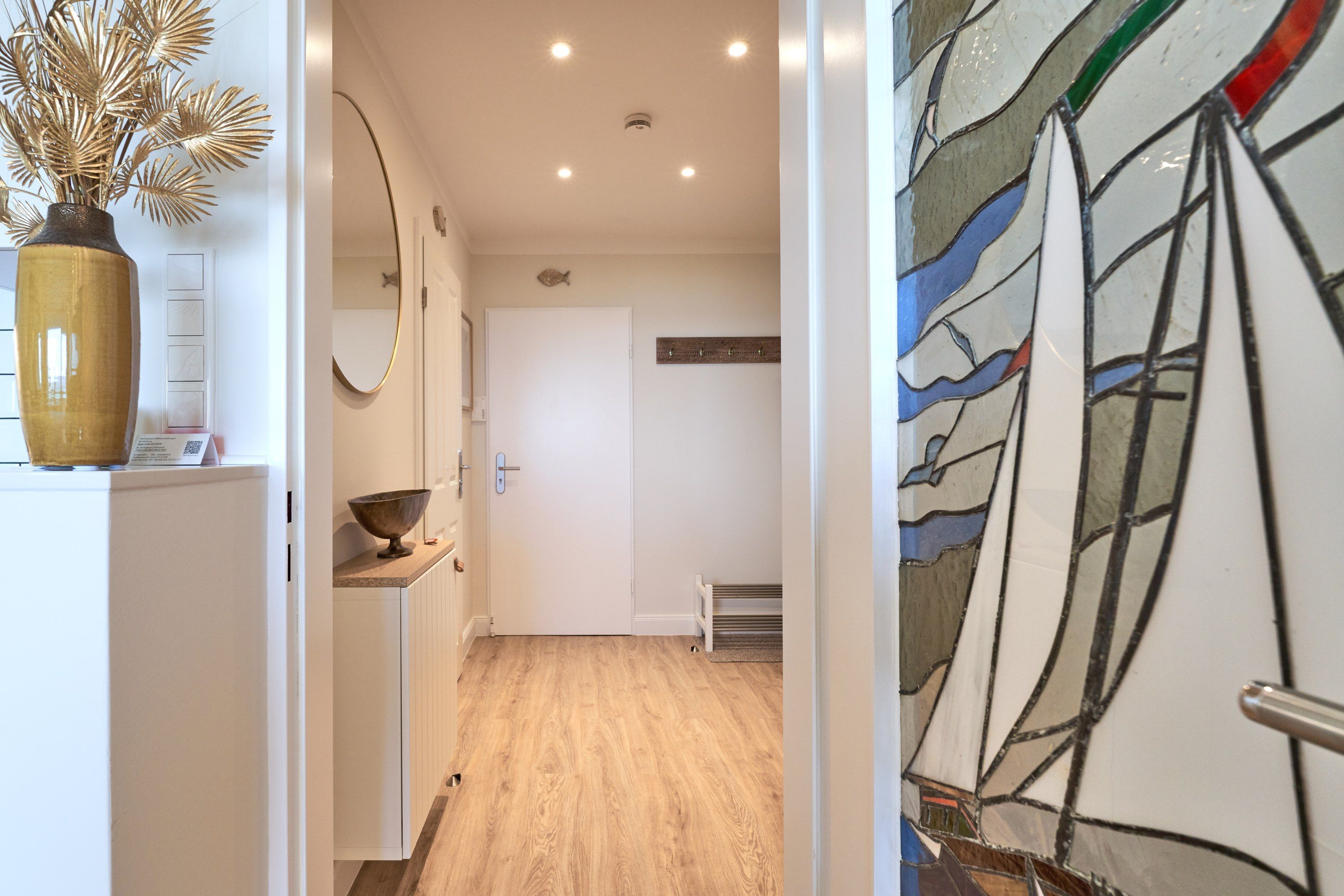 Bereits im Flur können Sie schon auf die Ostsee blicken und weiter … Aus beiden Räumen haben Sie Ostseeblick! In dieser traumhaften Wohnung werden Sie sich gleich wohlfühlen. Das Wohnzimmer bietet Ihnen eine angenehme Atmosphäre. Lichtkonzept / dimmbar für jeden Geschmack. Hochleistungs-WLAN-Flat mit 250 MBit/s, TV UHD 65 Zoll, Magenta TV inkl.
