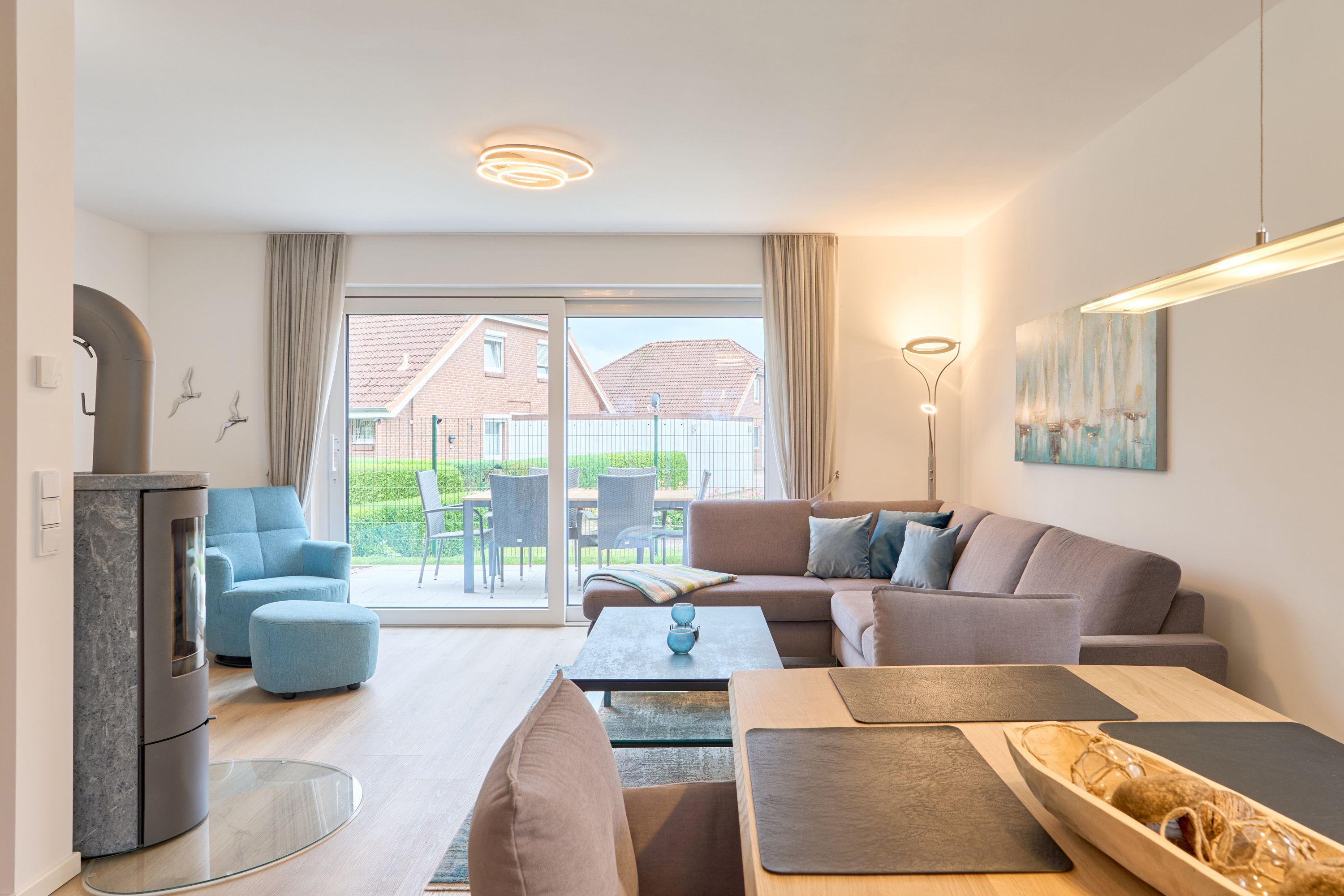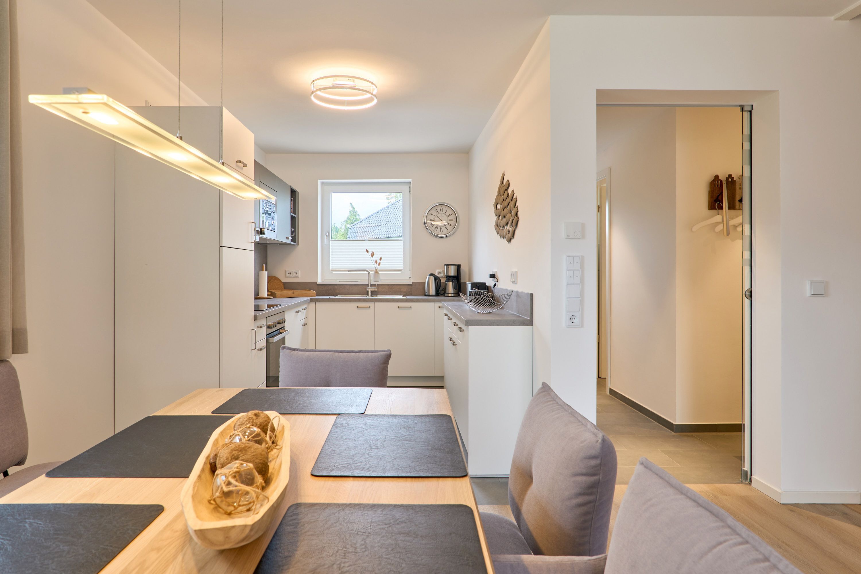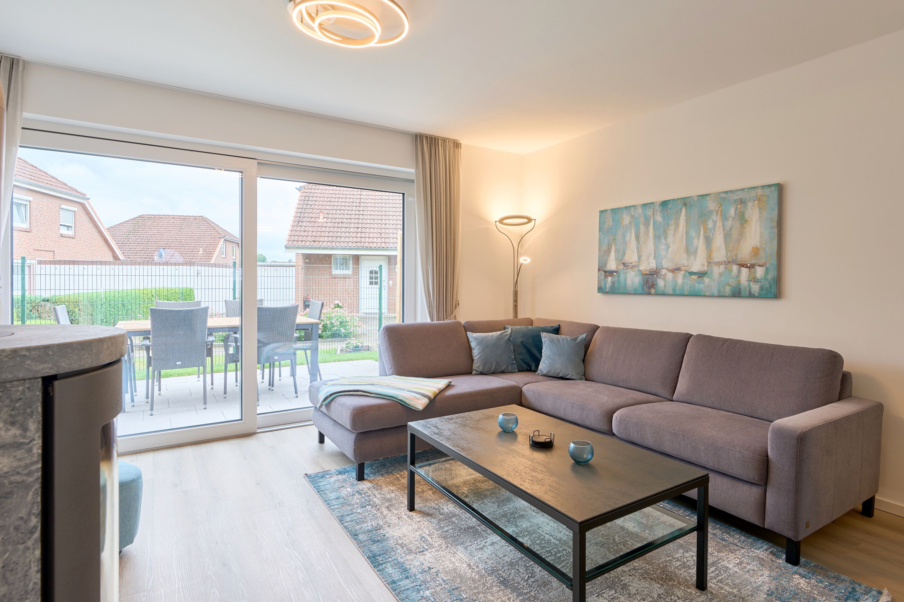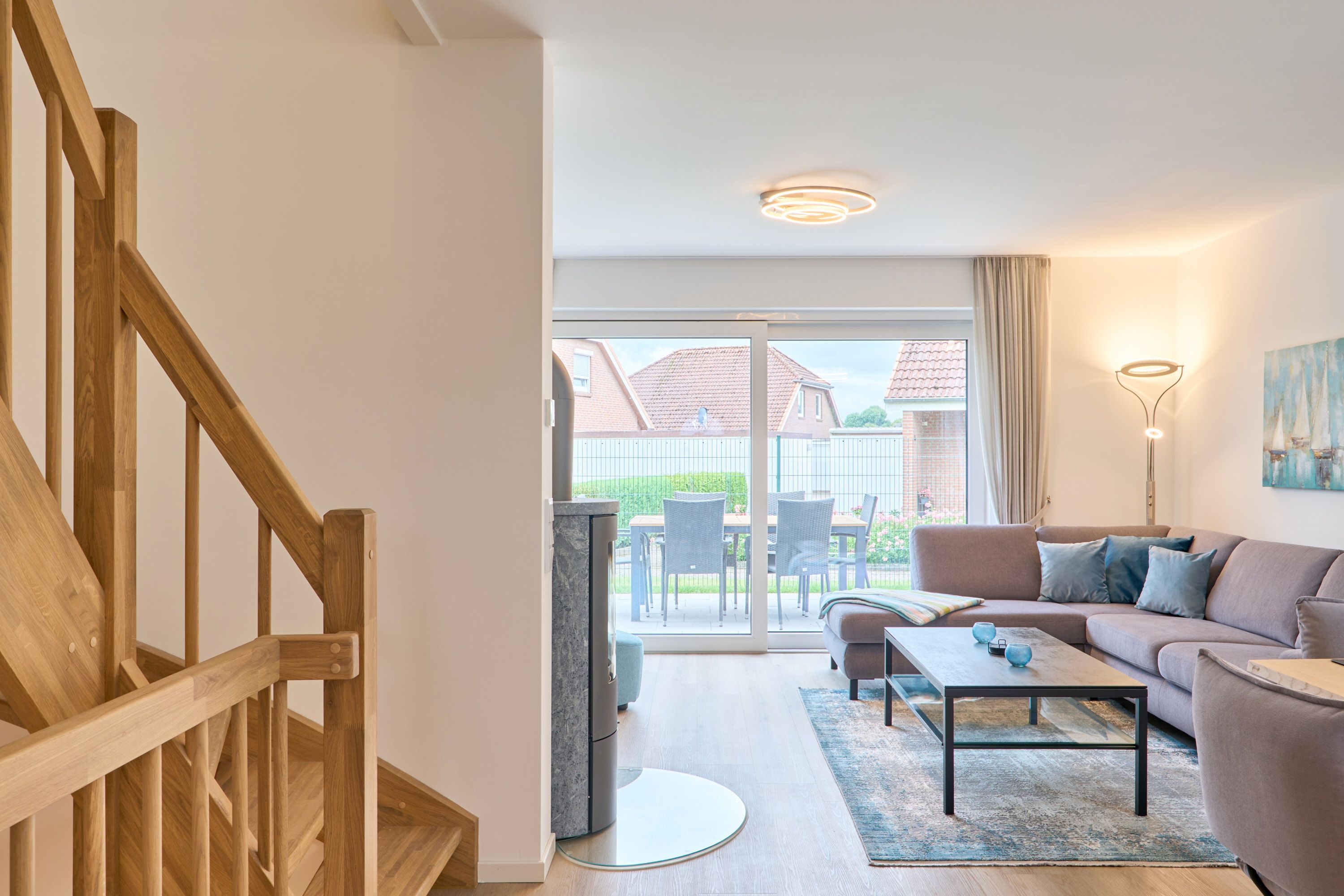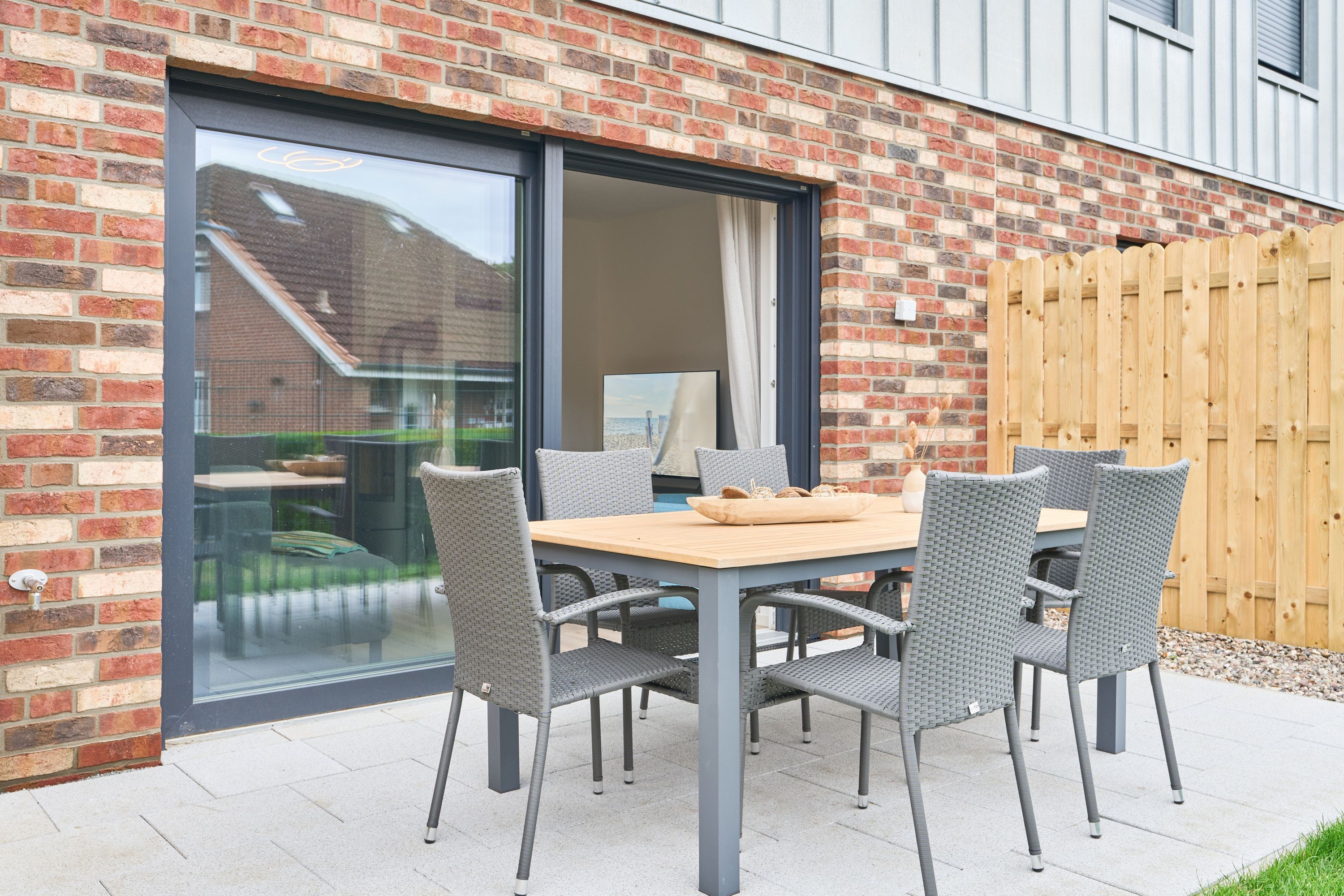 Endreihenhaus, ca. 100 m² auf zwei Ebenen, 3 Schlafzimmer, 2 Bäder, für bis zu 6 Personen, Südterrasse, Außenstellplatz mit E-Ladestation