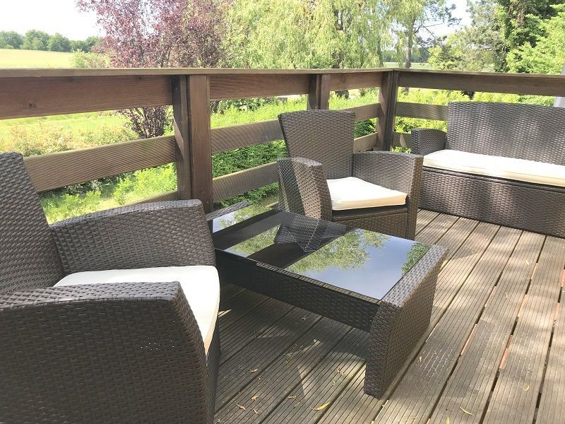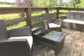 Das Highlight unserer Ferienwohnung ist der großzügige Balkon. Mit 10 Quadratmetern Fläche bietet er genügend Platz, um die spektakuläre Aussicht auf den Bodden zu genießen. Ausgestattet mit komfortablen Gartenmöbeln, ist er der ideale Ort, um bei einem Glas Wein die Seele baumeln zu lassen oder in einem guten Buch zu schmökern.