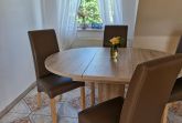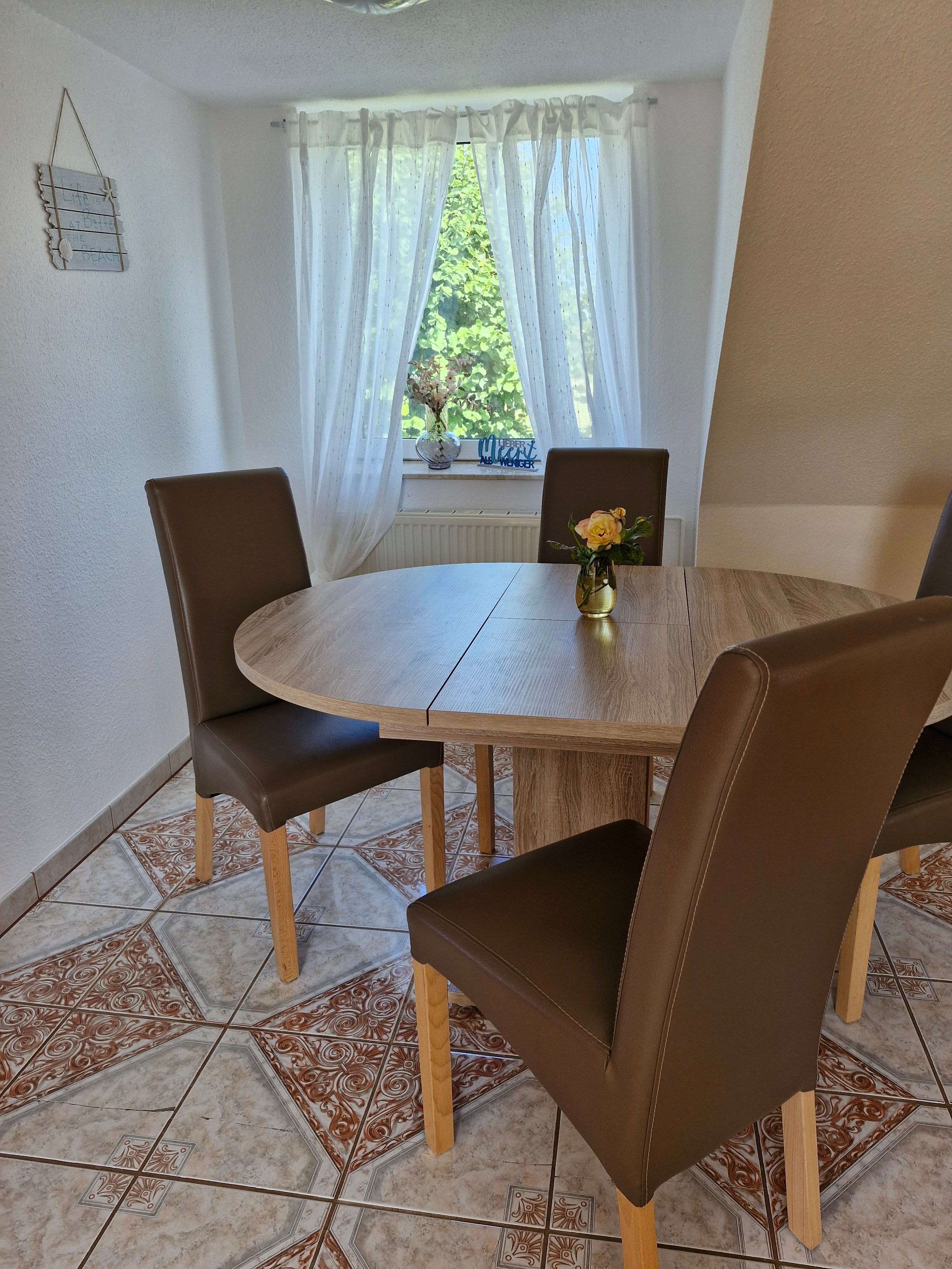Die Küche ist Ihr Reich für kulinarische Entdeckungen - mit einem Kühlschrank, Cerankochfeld, Backofen und weiteren Annehmlichkeiten wie einer Kaffeemaschine, einem Wasserkocher und einem Toaster. Der Esstisch mit Platz für vier Personen lädt zu gemeinsamen Mahlzeiten und geselligen Runden ein.