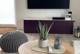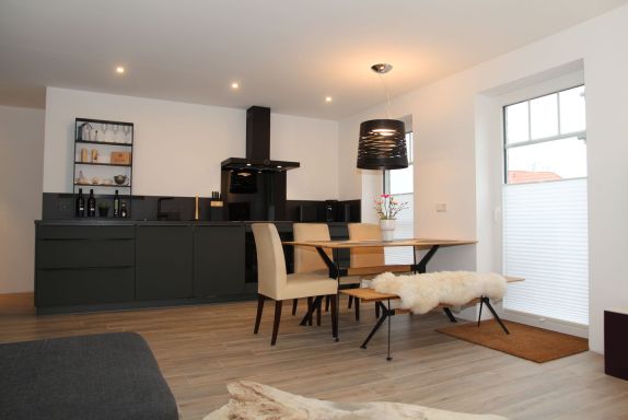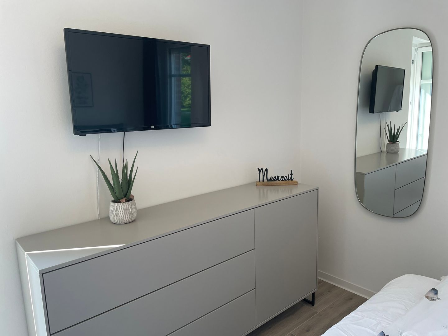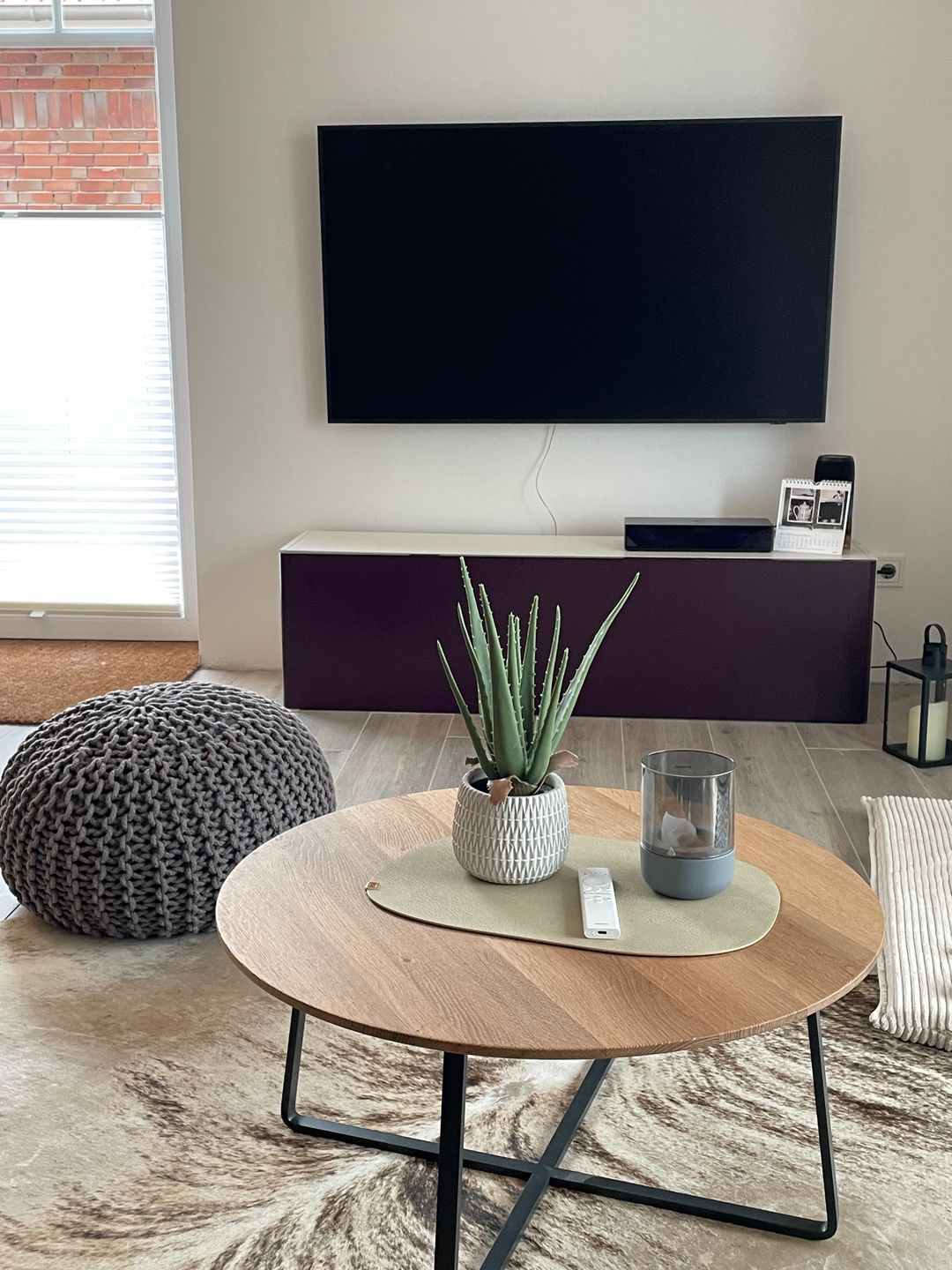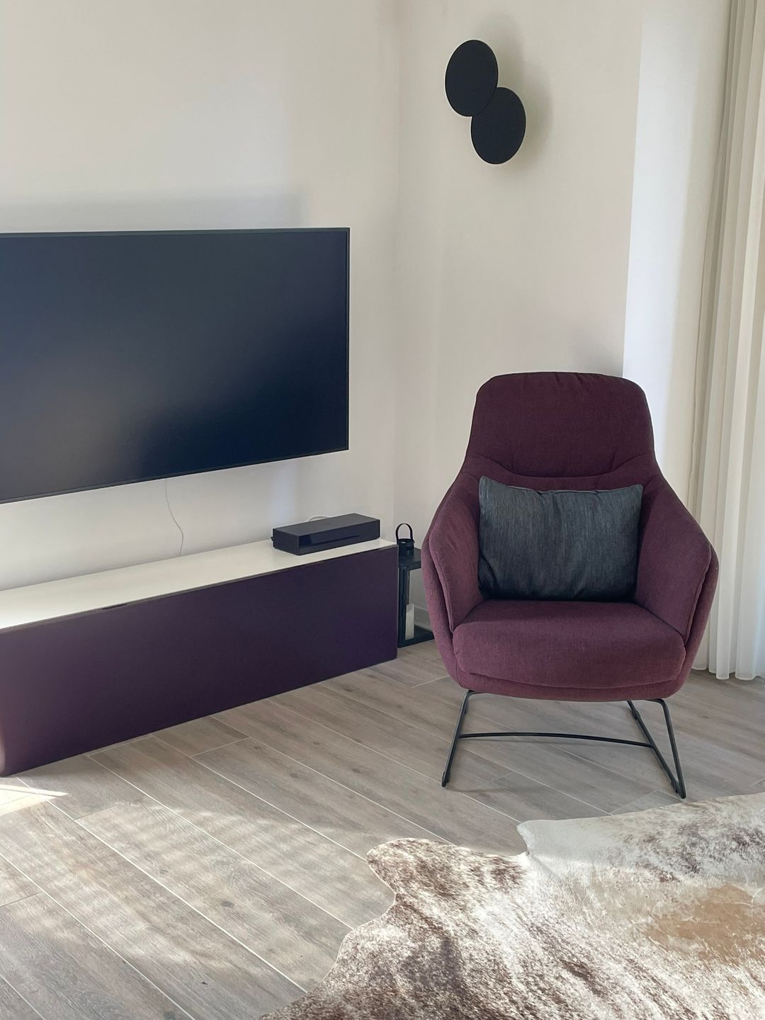 Das Interieur besticht durch ein geschmackvolles Design und hochwertige Möbel, die für ein modernes und dennoch gemütliches Ambiente sorgen. Der offene Wohnbereich mit seinen bequemen Sitzgelegenheiten, Couch mit Récamiere und Sessel lädt zum Entspannen ein und bietet einen herrlichen Blick durch die bodentiefen Fenster auf den Garten und das umliegende Wasser. Ein großer Smart TV und Glasfaser WLAN (für uneingeschränkte Verfügbarkeit und ausreichende Geschwindigkeit übernehmen wir keine Gewähr) stehen zur Verfügung, um Ihnen Unterhaltung und Konnektivität zu bieten. Die voll ausgestattete und supermoderne Küche lässt keine Wünsche offen. Der angrenzende Essbereich ist der perfekte Ort, um Ihre Mahlzeiten zu genießen oder in geselliger Runde beisammenzusitzen. Für gute Beleuchtung haben wir gesorgt.