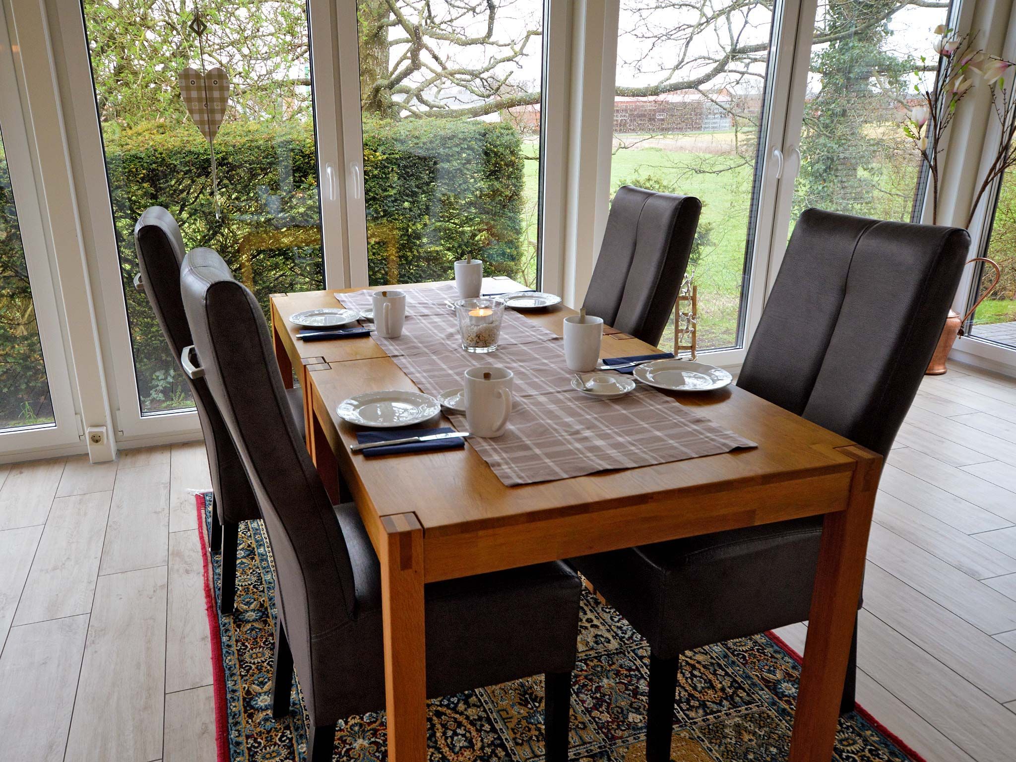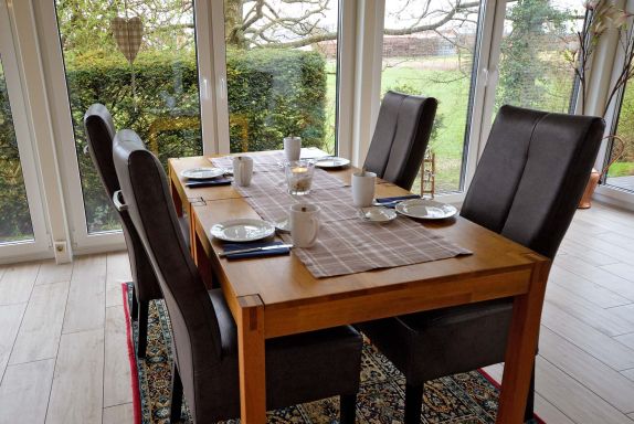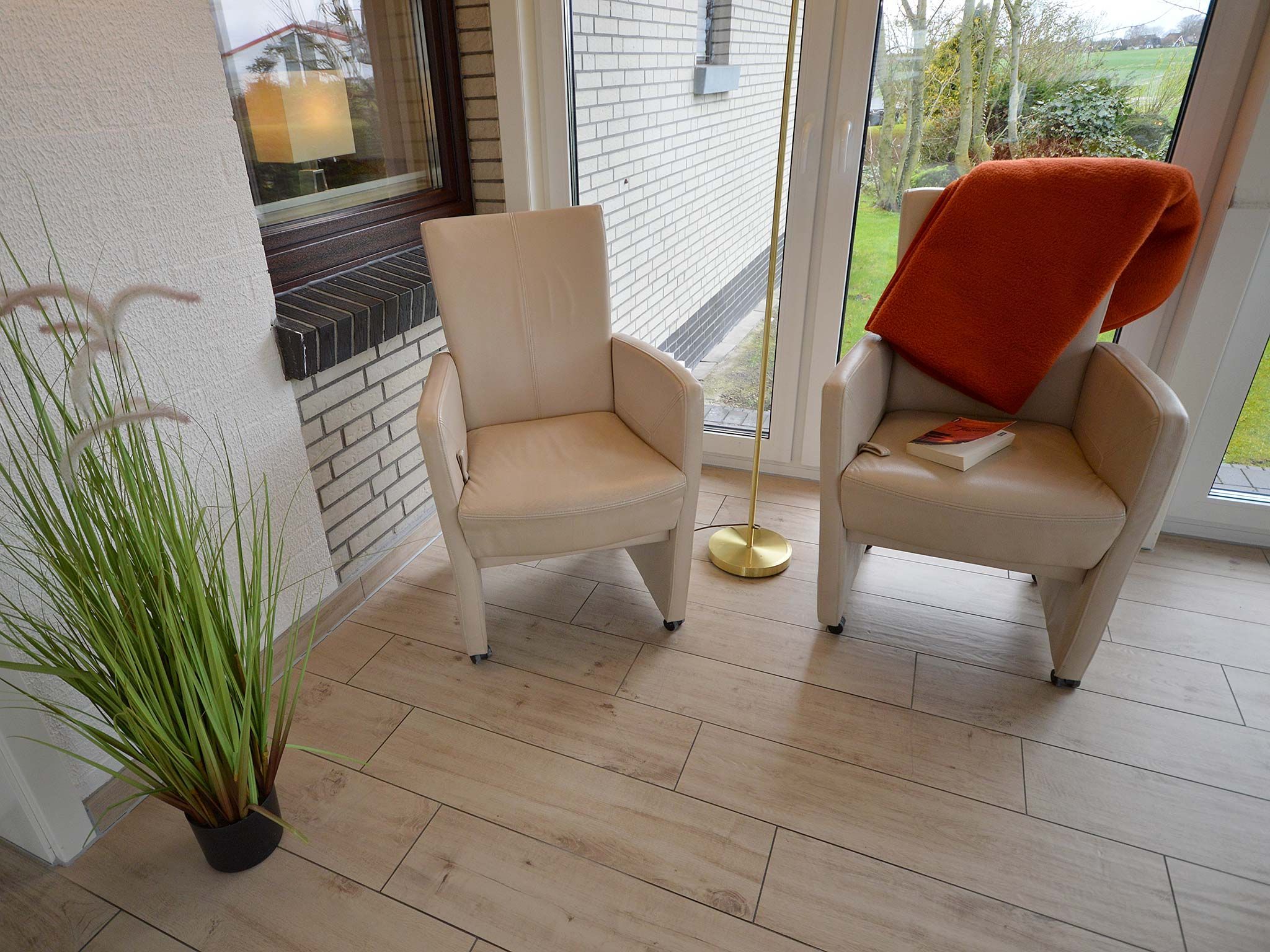 Das highlight ist der Wintergarten, wo Sie den Tag mit einem Frühstück starten am Esstisch. Es befindet sich noch 2 Sessel zum relaxen oder ein spannendes Buch lesen können. Die Terrasse können Sie vom Wintergarten begehen und vielleichtden Tag mit einem Glas Wein ausklingen lassen können.