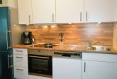 Die separate Küche mit komplett eingerichteter Küchenzeile, Cerankochfeld, Backofen, Microwelle, Spülmaschine und Kühlschrank und unten runter Gefrierschrank.