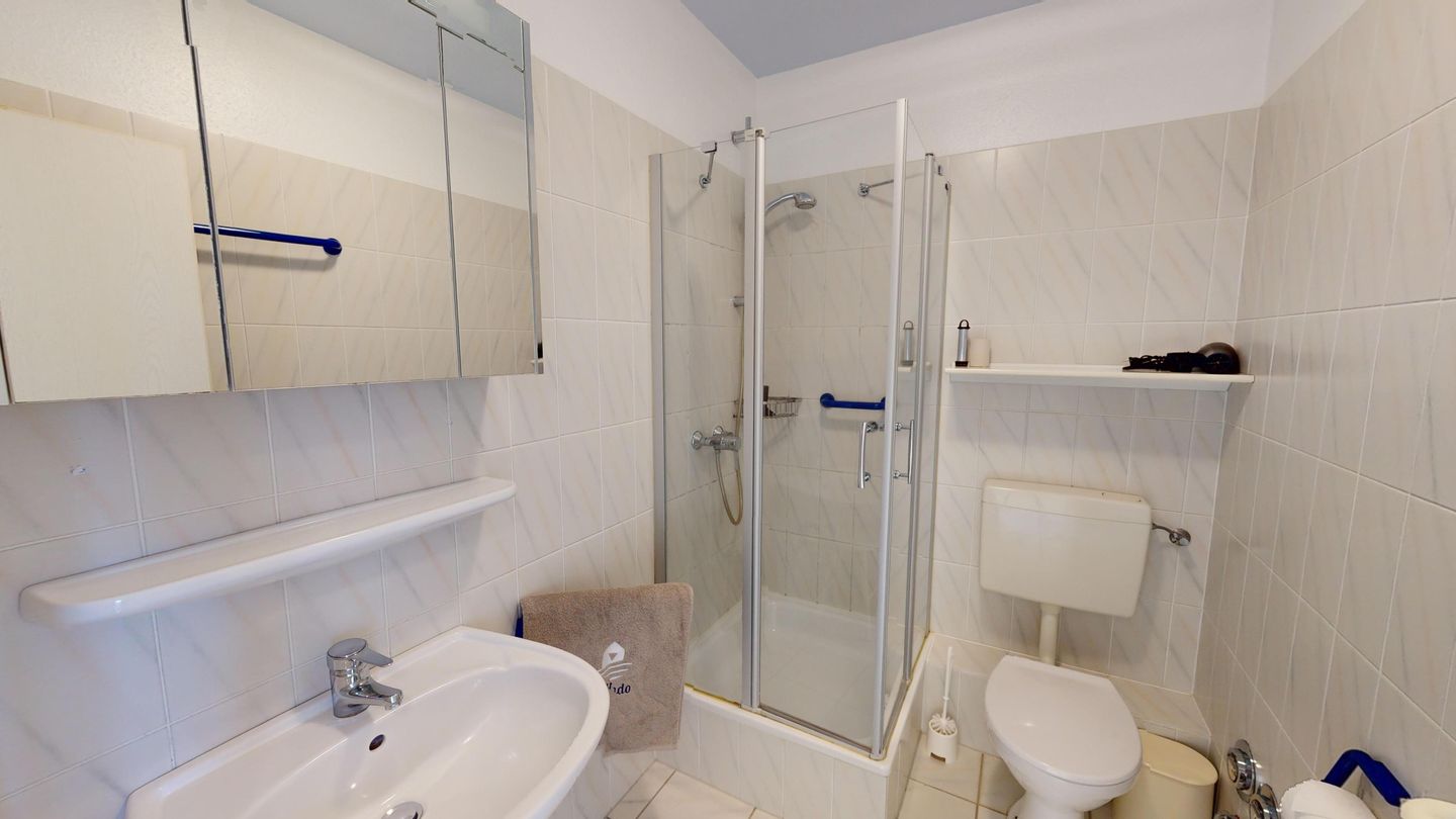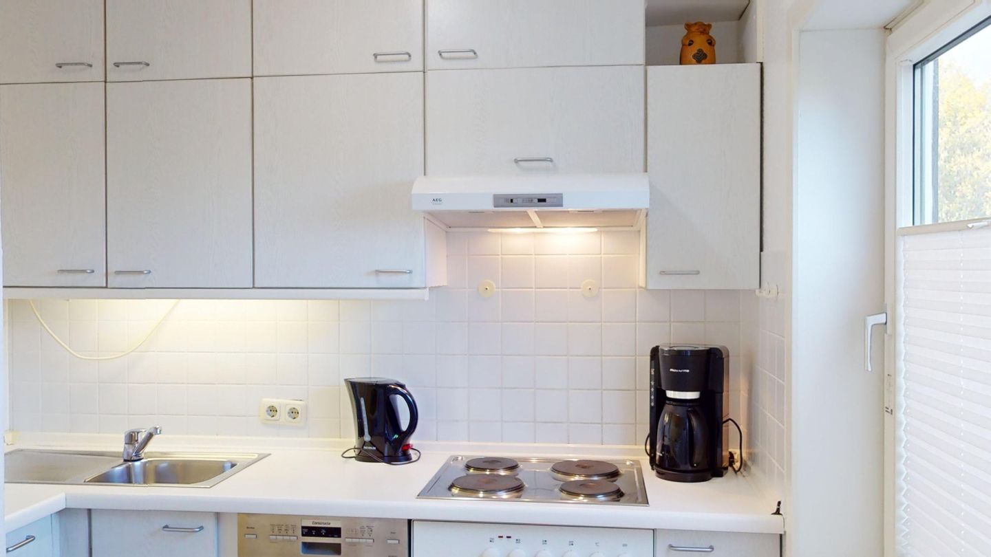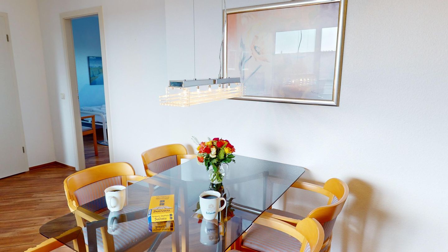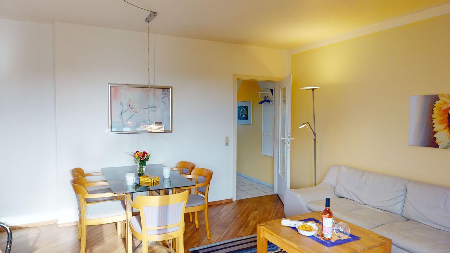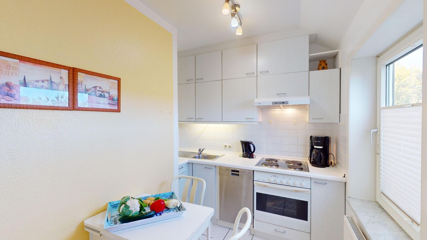 Der lichtdurchflutete Wohnbereich mit Essplatz und gemütlichem Sofa lädt zum Verweilen ein. Von dort aus gelangen Sie zu der separaten Küche mit zusätzlichem, kleinem Essbereich. Ein Schlafzimmer ist mit einem Doppelbett ausgestattet, das Zweite mit zwei gemütlichen Einzelbetten. Ergänzt wird die Wohnung durch ein Duschbad mit WC.