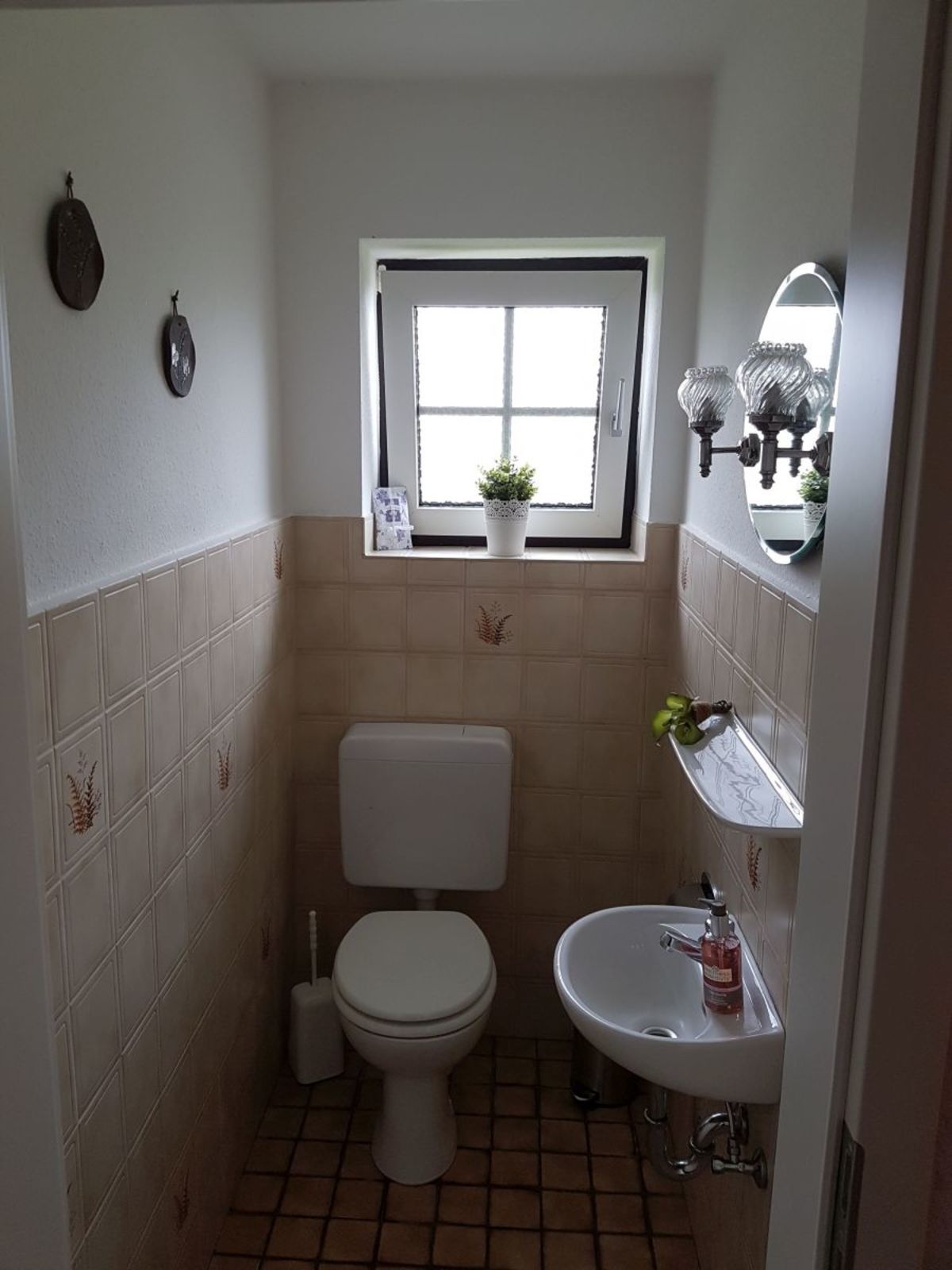 Im Erdgeschoss befindet sich ein WC mit Waschbecken, ein Abstellraum mit Waschmaschine, die Terrasse mit Gartenmöbeln, Spiel-/Liegewiese, Strandkorb, 2 Fahrräder, Gartengrill runden die Ausstattung ab.