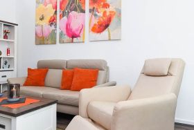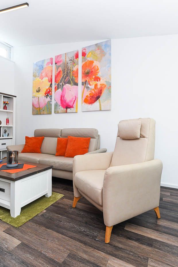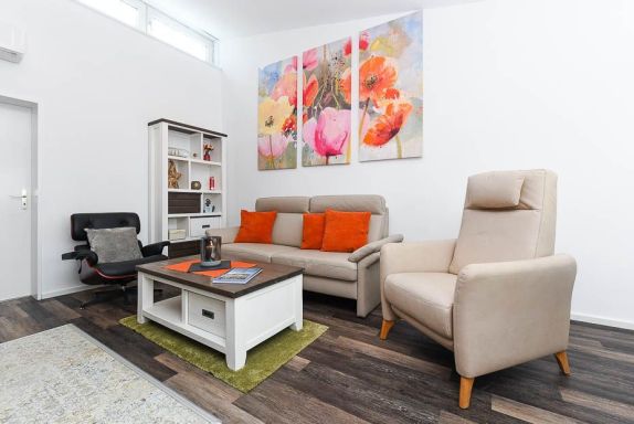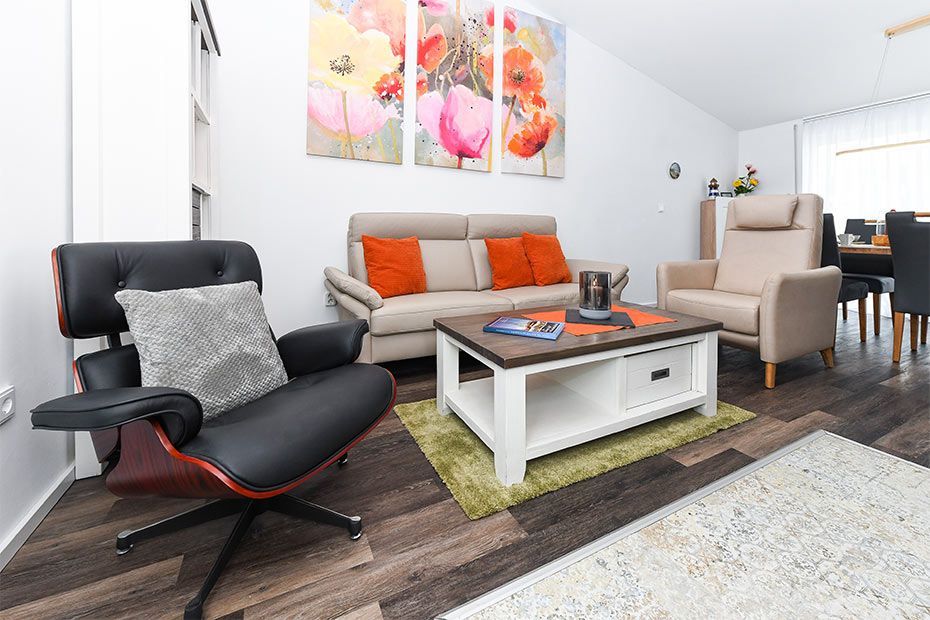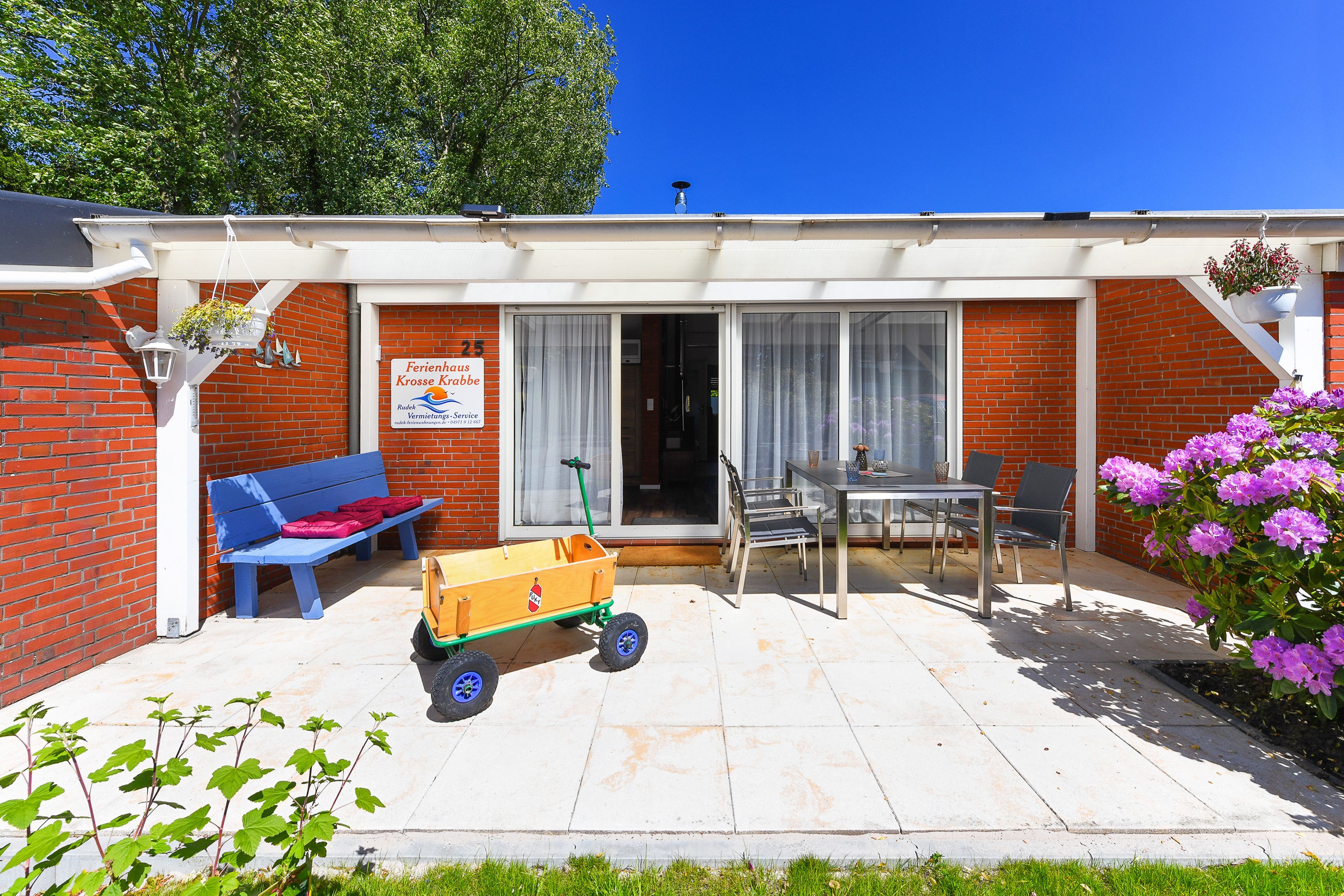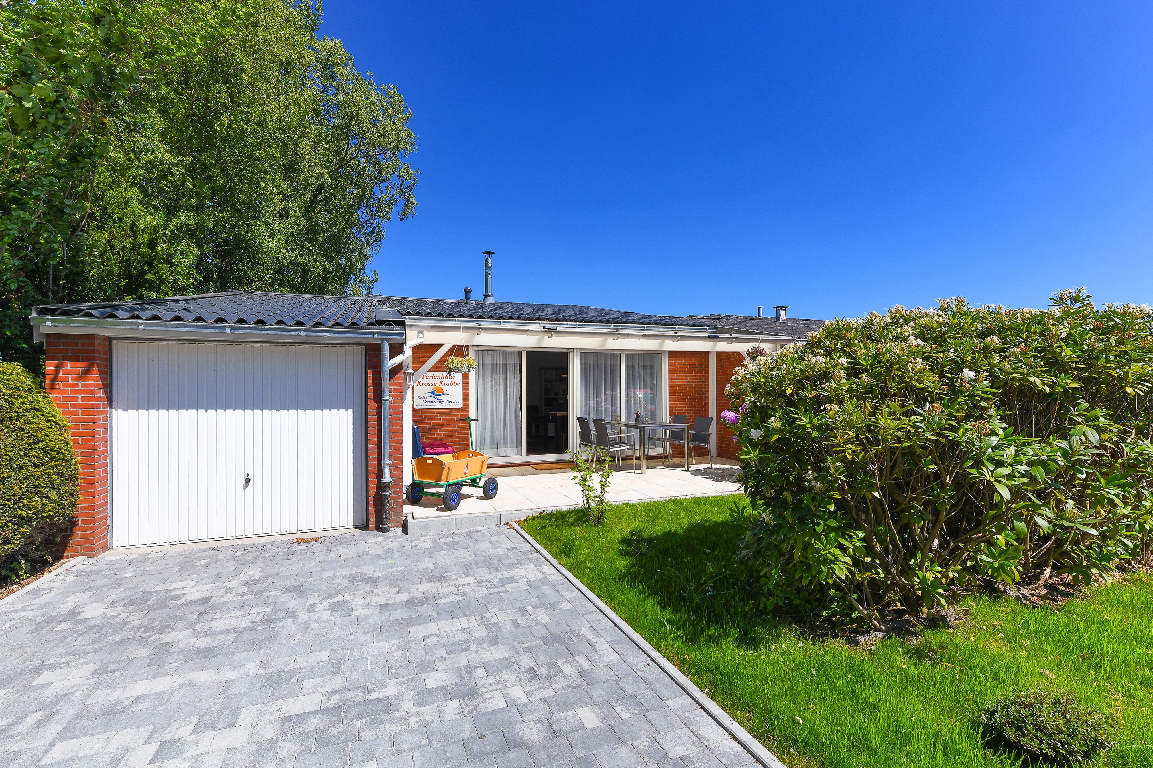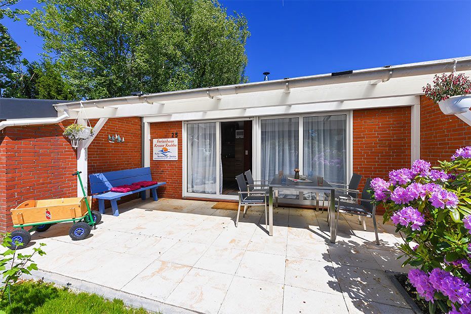 Das Ferienhaus „Krosse Krabbe“ ist hell und freundlich gestaltet, komfortabel und modern-gemütlich eingerichtet sowie sehr gut ausgestattet. Es verfügt zum Beispiel über eine Küche mit Geschirrspülmaschine und Mikrowelle, moderne Boxspringbetten in den Schlafzimmern, einen Hauswirtschaftsraum mit Waschmaschine und Wäschetrockner sowie über eine große geschützte Terrasse am Wohnzimmer mit direktem Gartenzugang.