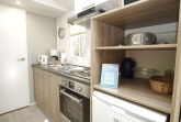 KÜCHE // offene Küche, 4-Plattenherd, Kühlschrank mit Gefrierfach, Backofen, Toaster, Wasserkocher, Kaffeemaschine, reichlich Besteck, Geschirr und Küchenutensilien ++