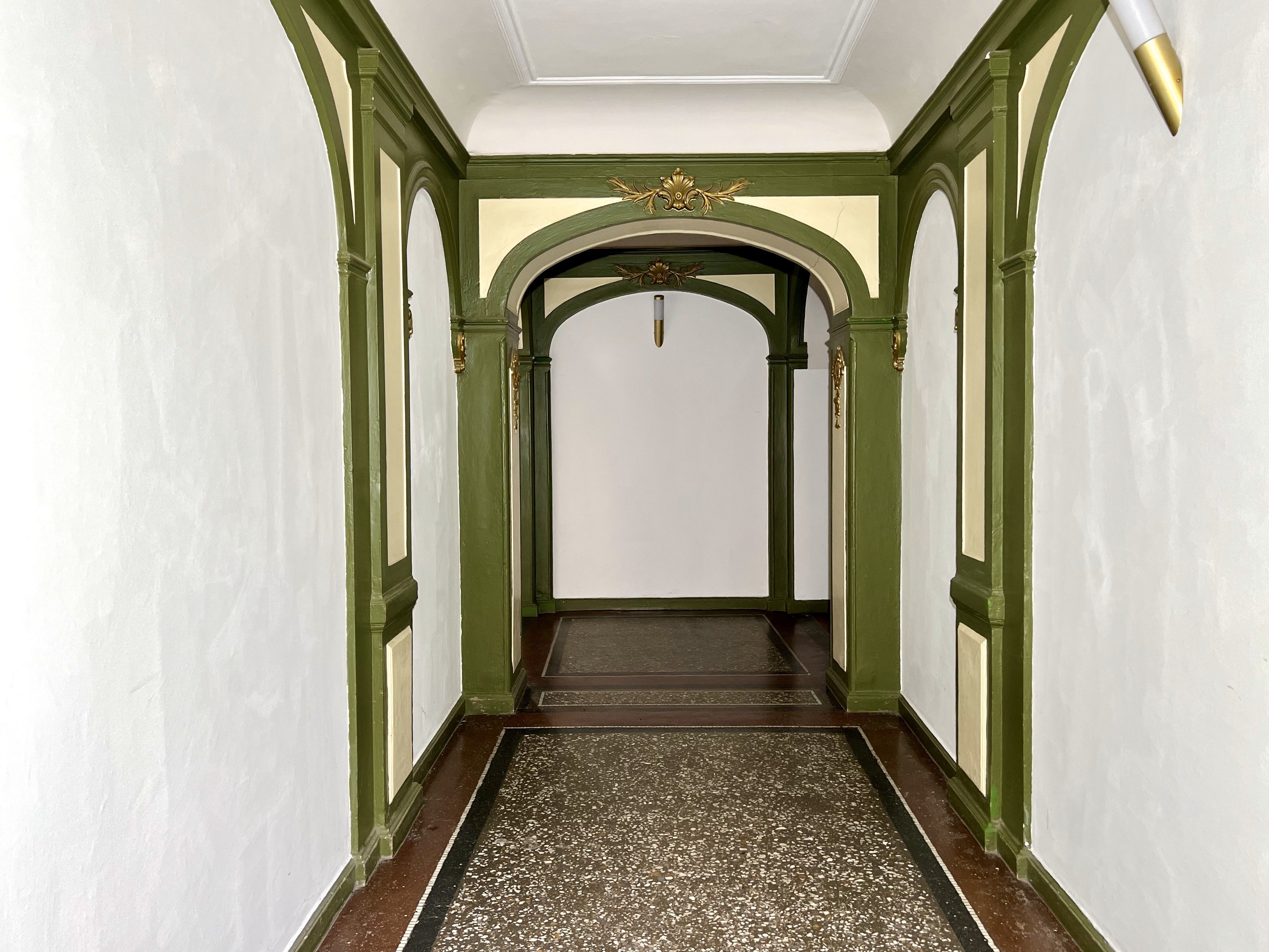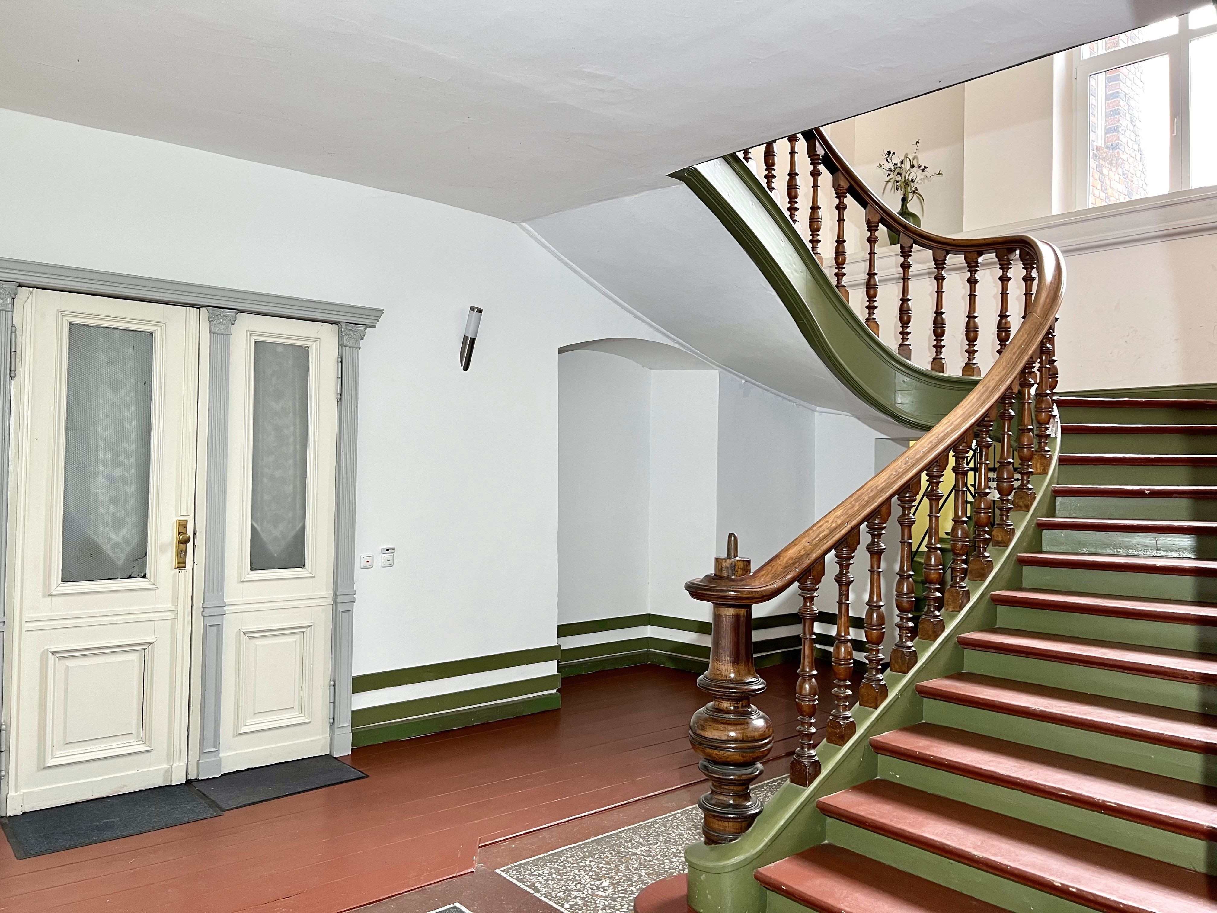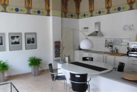 Das Appartement ist 62 qm groß, frisch renoviert, modern eingerichtet und über einen Treppenaufgang zu erreichen. Die Deckenhöhe beträgt vier Meter, wobei das Wohnzimmer eine geschnitzte Holzdecke und Deckenmalereien hat. Die Küche ist in das Wohnzimmer integriert und mit modernen Geräten ausgestattet. W-LAN kostenfrei. Eine Gefriermöglichkeit steht im Keller für alle Gäste bereit (pro Wohnung 1 Gefrierfach).