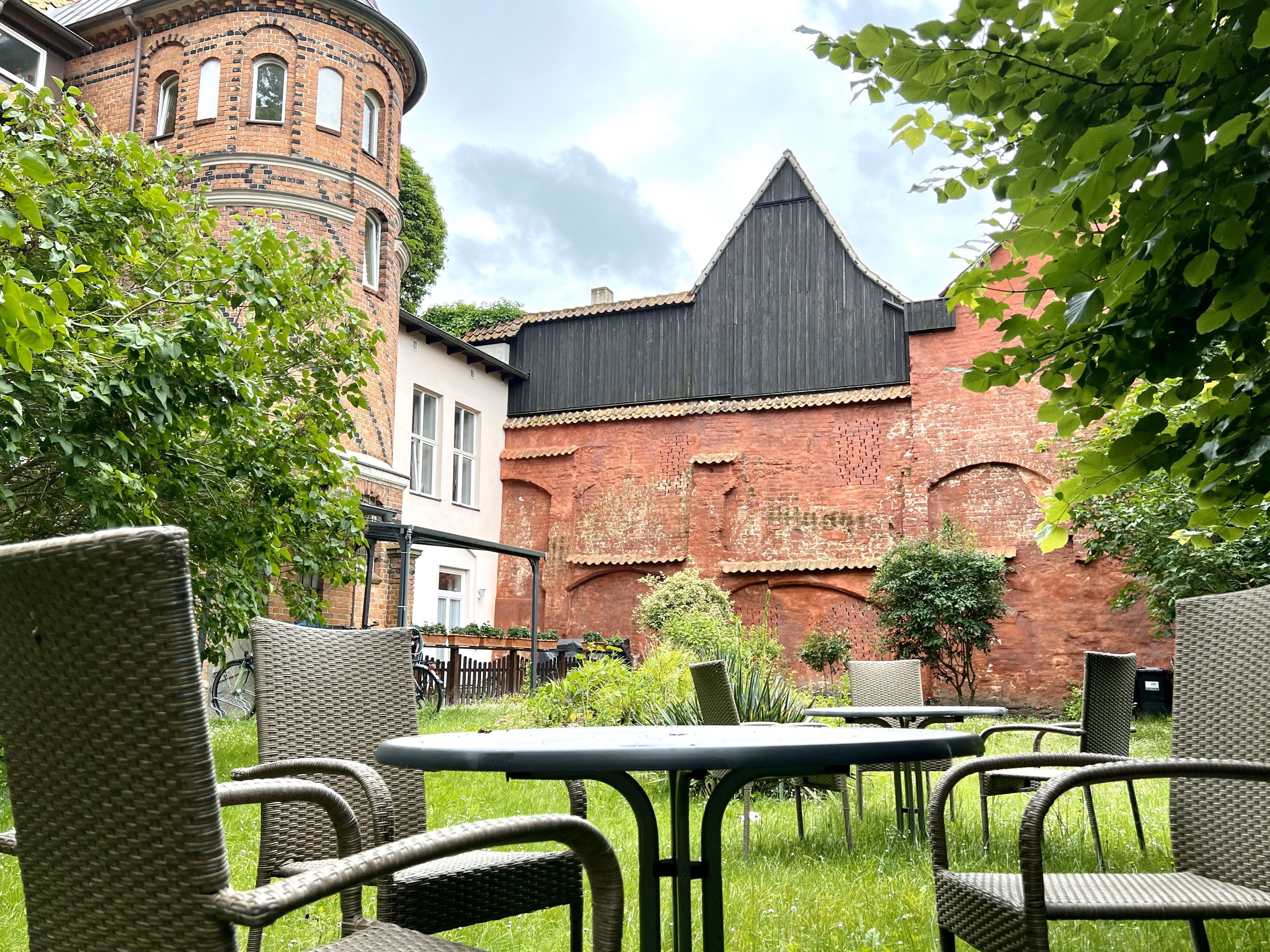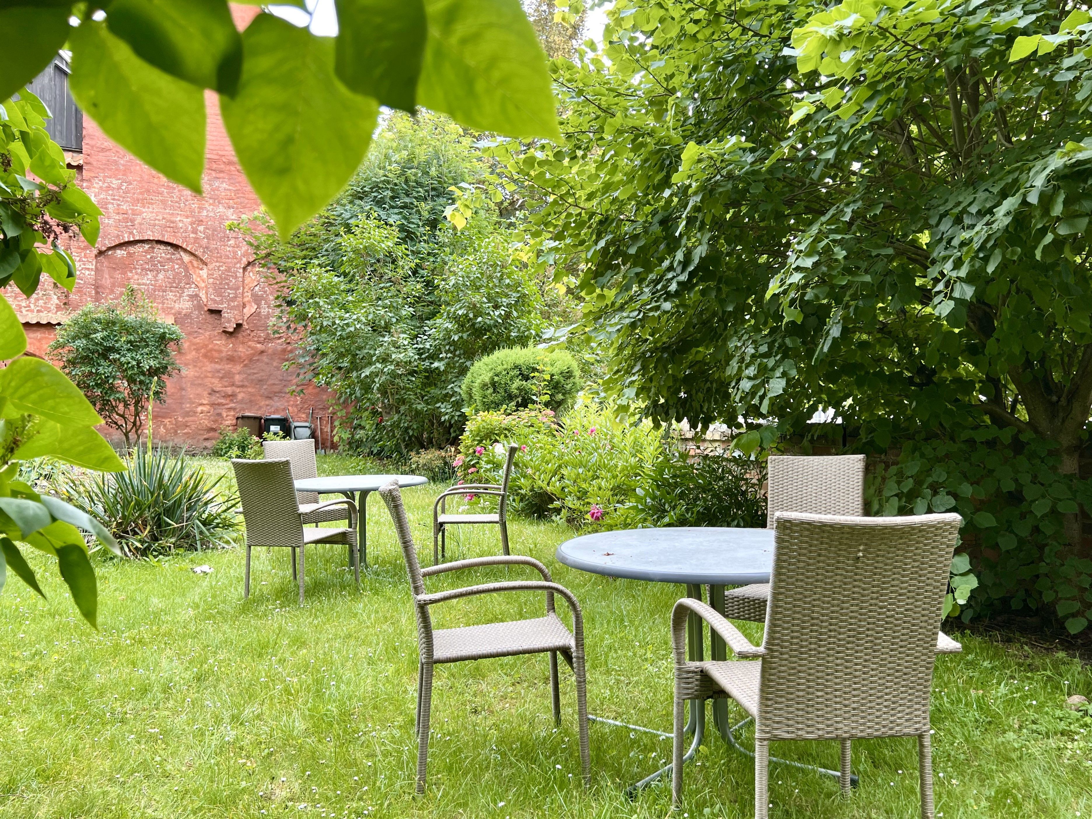 Der bezaubernde Garten direkt auf der Stadtmauer lädt alle Gäste zum Verweilen und Grillen ein.