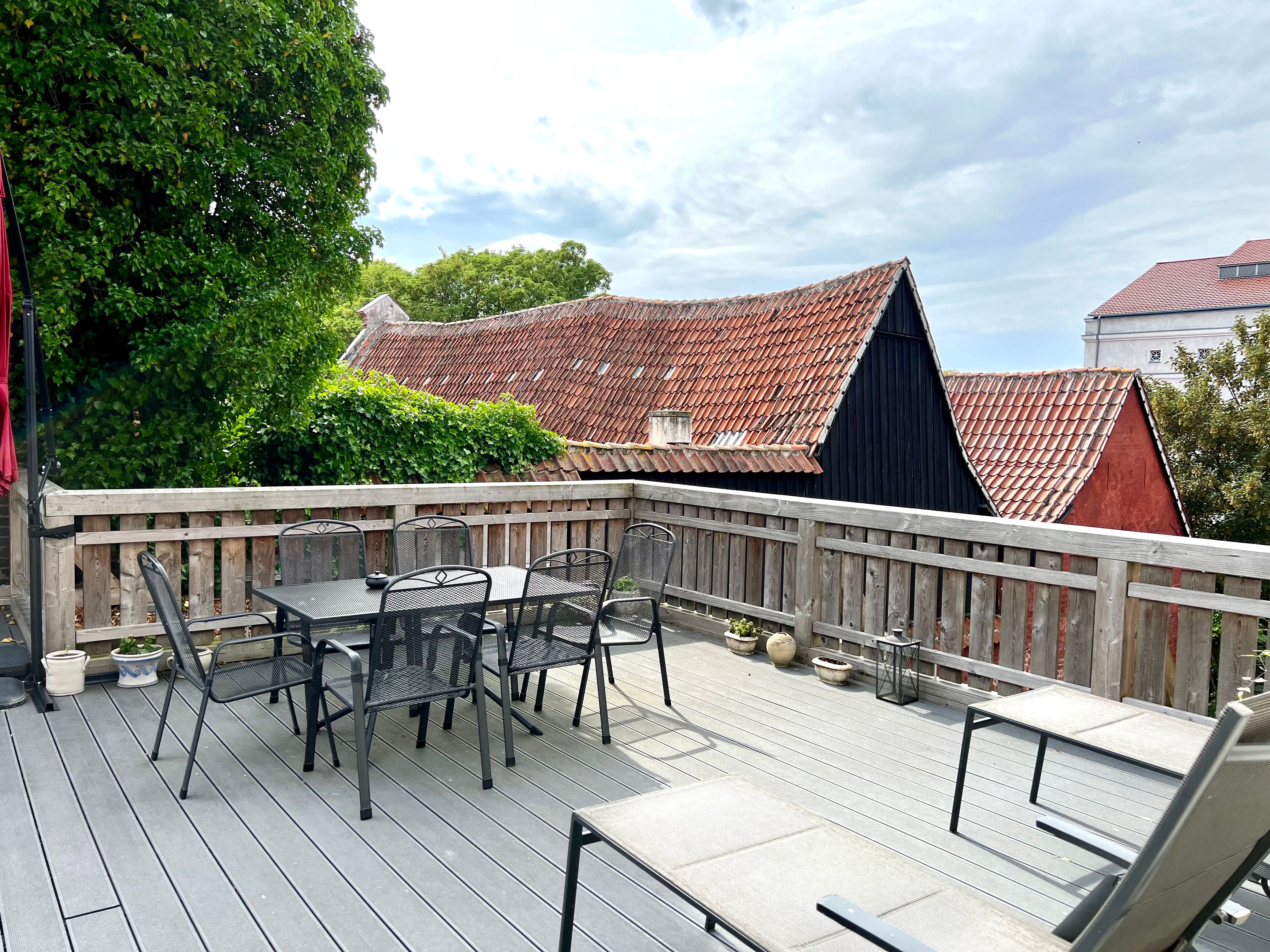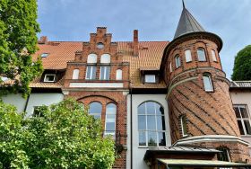 Ebenso steht eine große Gemeinschaftsdachterrasse zur Verfügung. Hier haben Sie einen fantastischen Bilck auf das Stralsunder Theater.