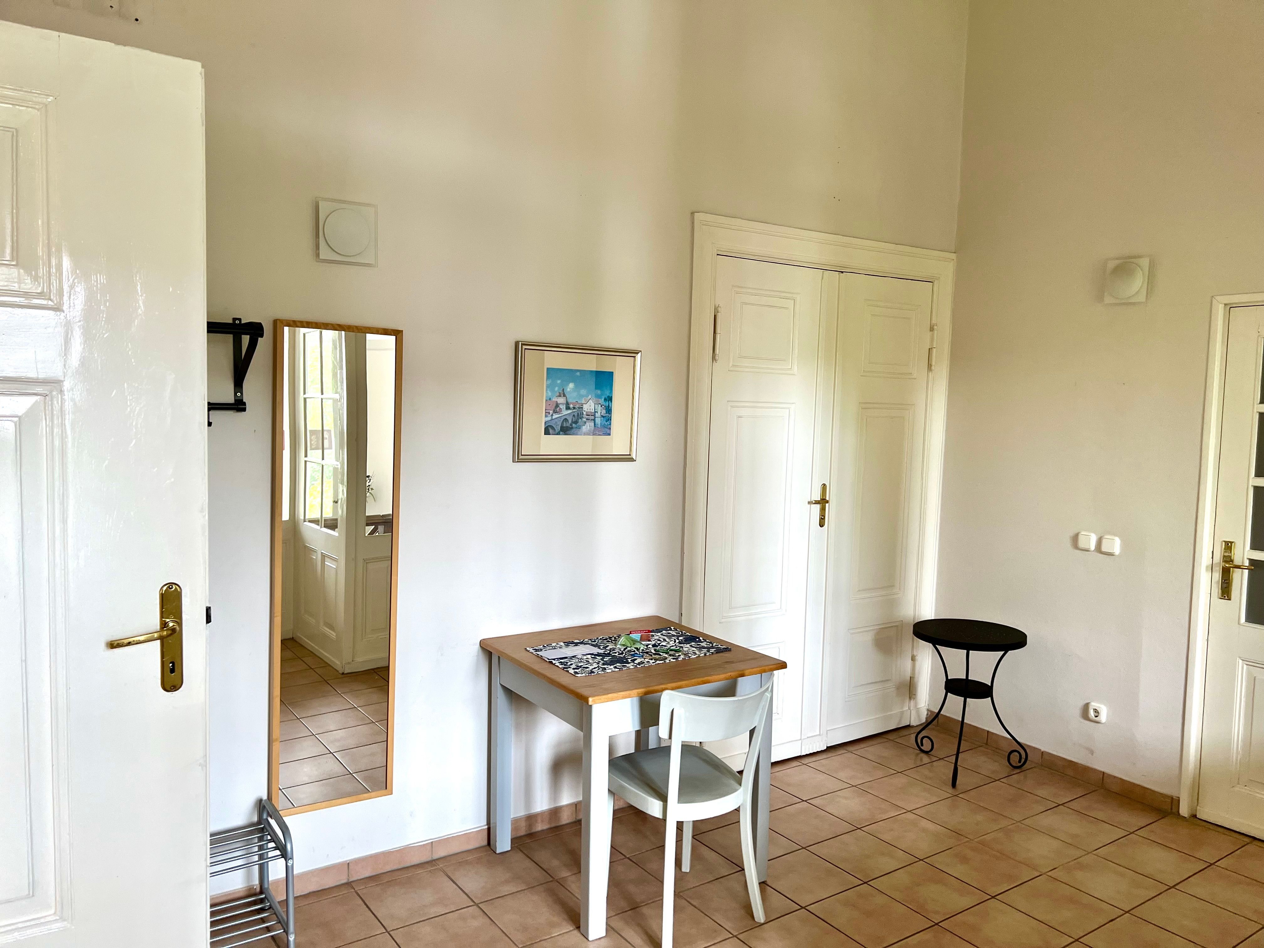 Die Wohnung hat ein großes Wohnzimmer mit Balkon sowie eine voll ausgestattete Küche mit großen Esstisch. Neben der Küche bzw. neben dem Wohnzimmer ist ein Aufenthaltsraum zum Sitzen, Lesen und Verweilen.