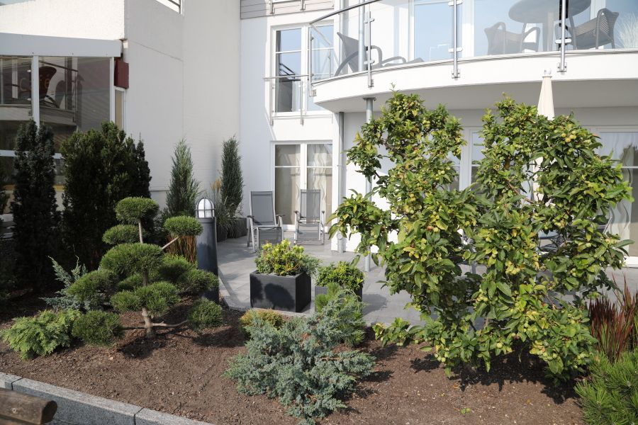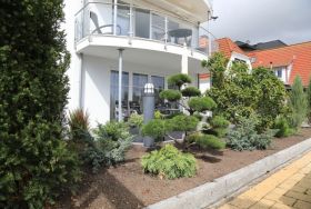 - weitere Ausstattungen: Verdunkelung mit Plisees + Schiebevorhänge/Raffrollo, Terrassenmöbel und Liegen mit Sonnenschirm, Rauchmelder in allen Räumen.