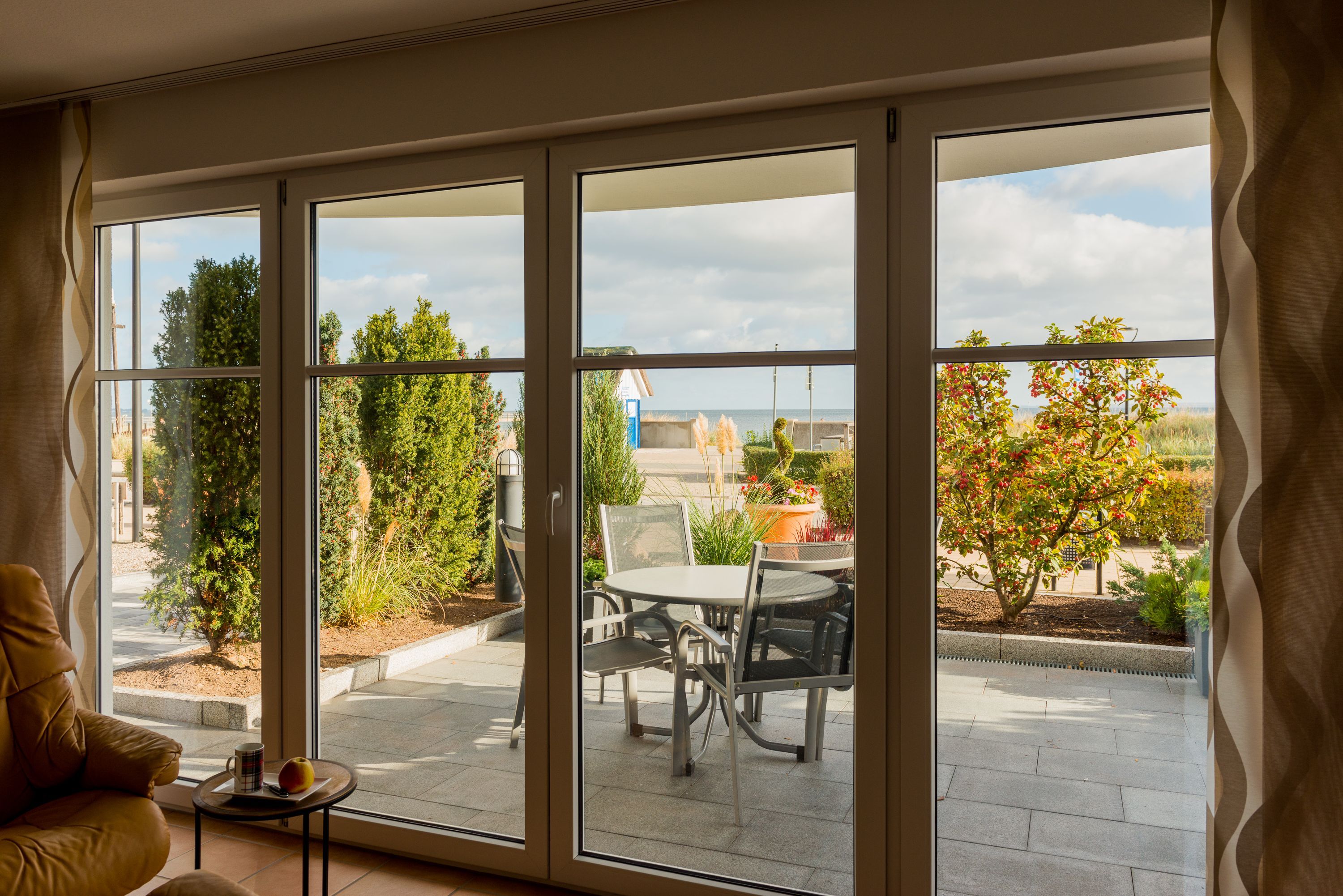 - eine offen gestaltete Ferienwohnung im Erdgeschoss ebenerdig mit Glasfronten --> meerseitig