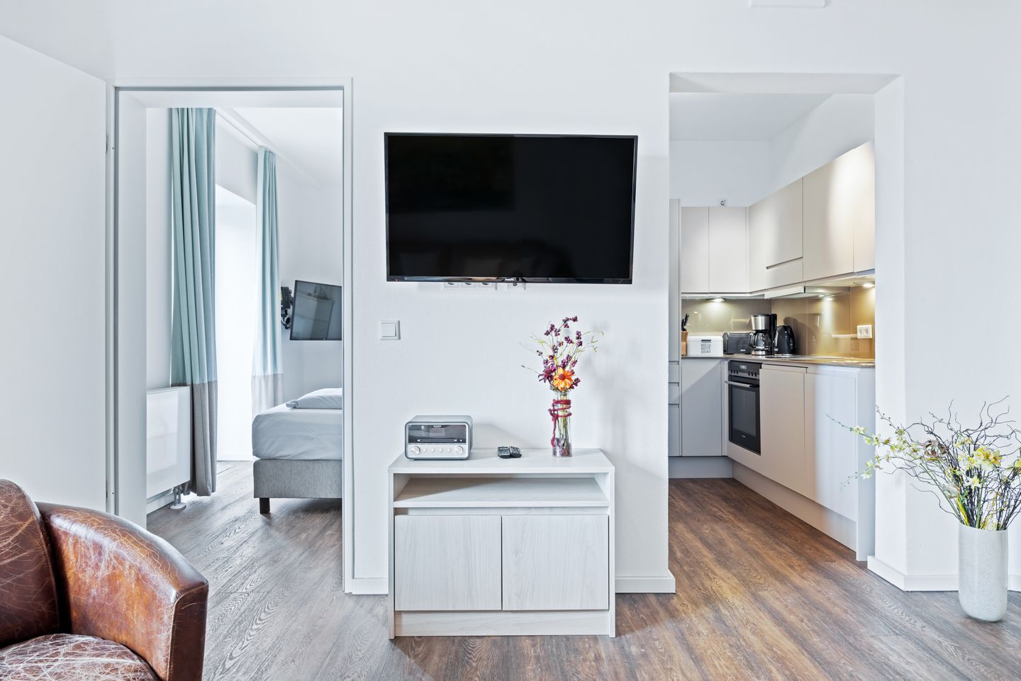 Die barrierearmen Apartments verfügen über WLAN, offene Küchen sowie eine harmonische Inneneinrichtung mit wertiger Ausstattung. Waschmaschinen und Trockner stehen euch gegen Entgelt zur gemeinschaftlichen Nutzung zur Verfügung. Eine Aufzugsanlage ermöglicht die komfortable Erreichbarkeit aller Etagen. Ein Kinderspielplatz, öffentliche Parkplätze sowie eine Tiefgarage befinden sich in unmittelbarer Nähe. Das Wäschepaket pro Person und Aufenthalt ist inklusive und umfasst Bettwäsche, ein Handtuch, ein Badetuch sowie einen Duschvorleger pro Bad.