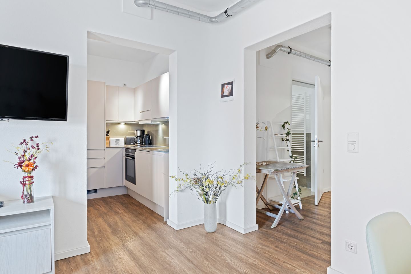 Das 51 m² große und komfortable 2-Zimmer Apartment ist für bis zu 3 Personen geeignet und verfügt über einen Balkon mit Blick auf die maritime Hafenkulisse.