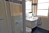 Appartement für 5 Personen: ein Wohnzimmer mit offener Küche und Balkon, ein Schlafzimmer mit einem Wasserbett und einem Doppelbett, für die 5. Person wird ein Zustellbett aufgestellt, ein Bad mit Dusche/WC.