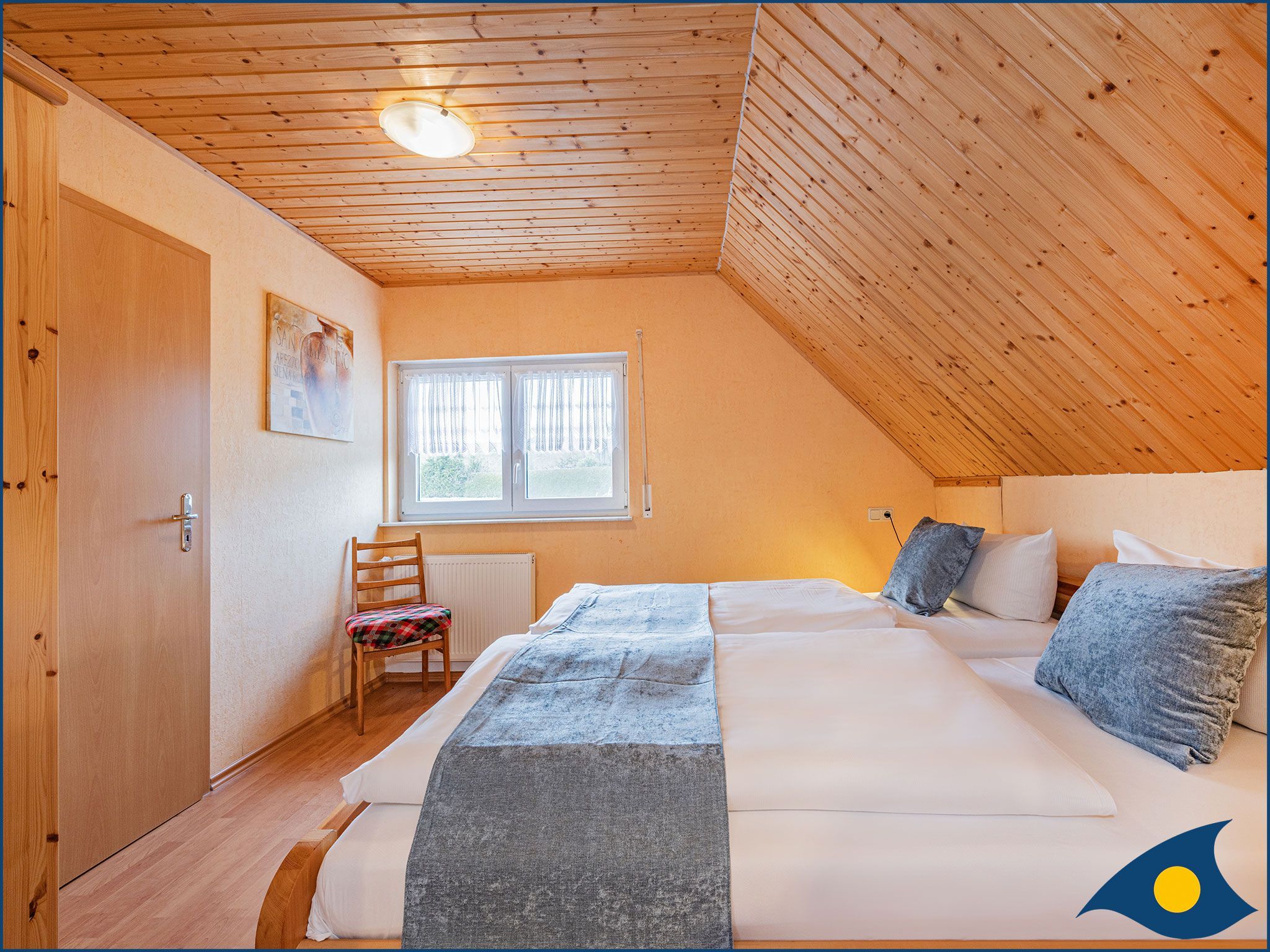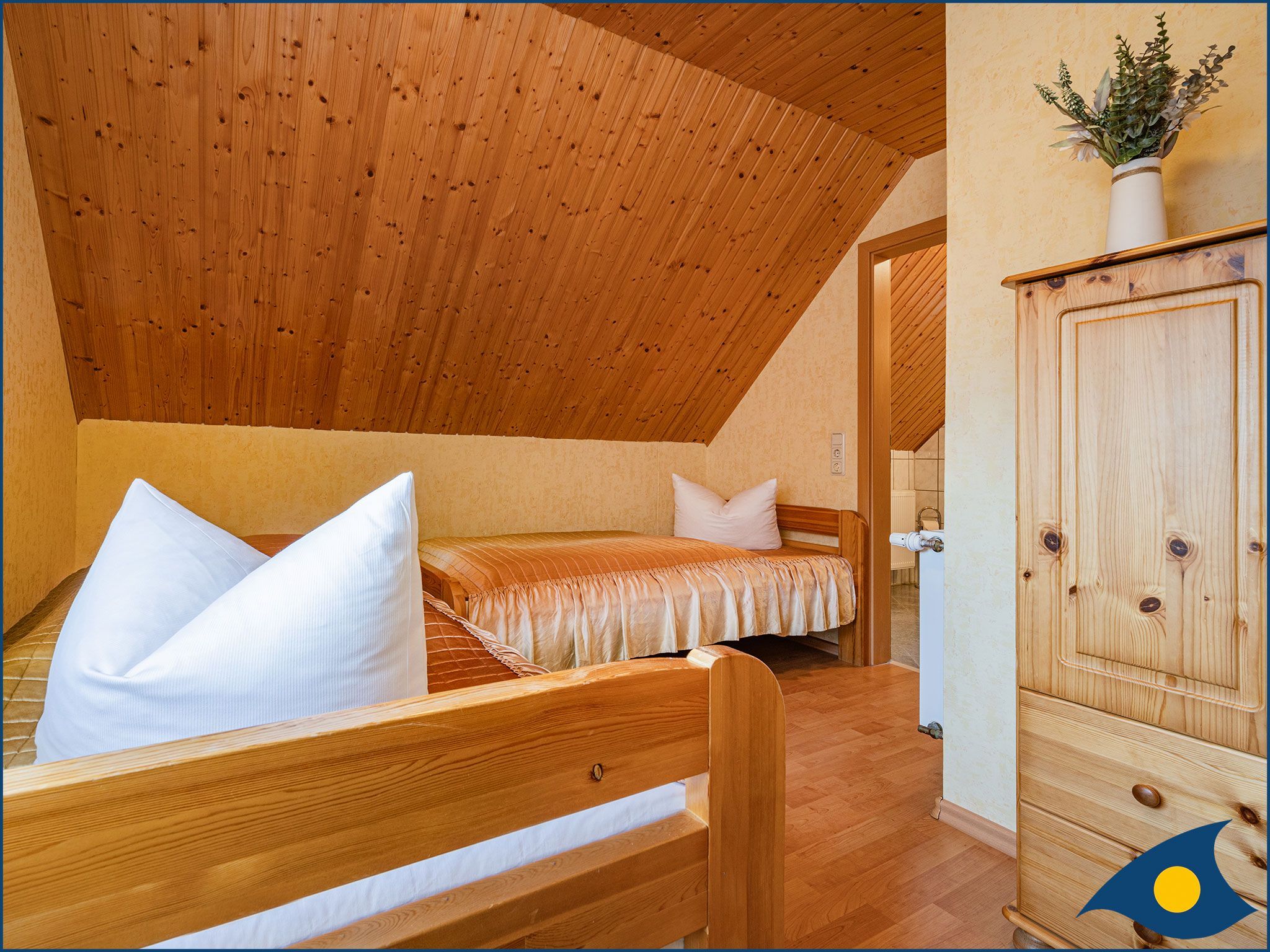 Die zwei Schlafzimmer, sowie ein kleines Bad mit WC, befinden sich im Dachgeschoss des Hauses.