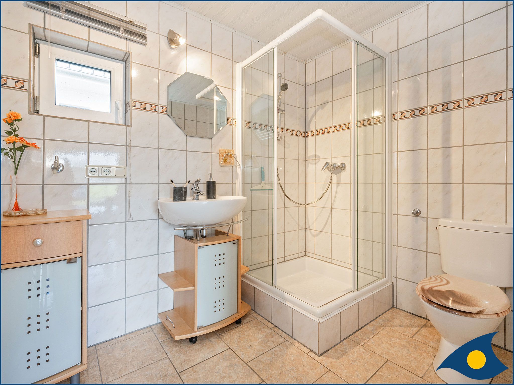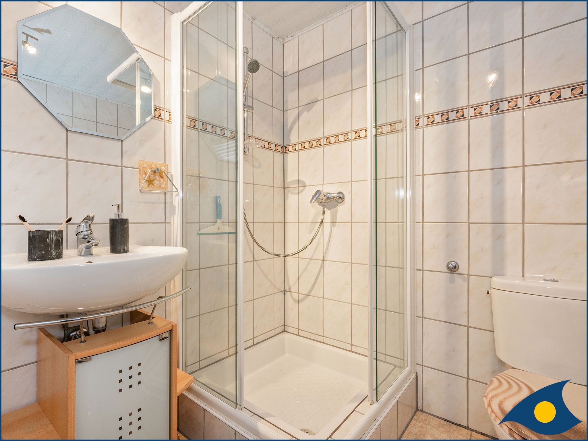 Neben dem großzügigen Eingangsbereich, begrüßt Sie im Erdgeschoss ein heller Wohnraum mit offener, gut ausgestatteter Küche inkl. Essplatz und gemütlicher Couchecke. Vom Wohnbereich aus gelangen Sie auf die große Terrasse, auf der Sie den Tag verbringen und die Abende ausklingen lassen können. Ebenfalls befindet sich im Erdgeschoss das große Badezimmer mit einer Dusche.