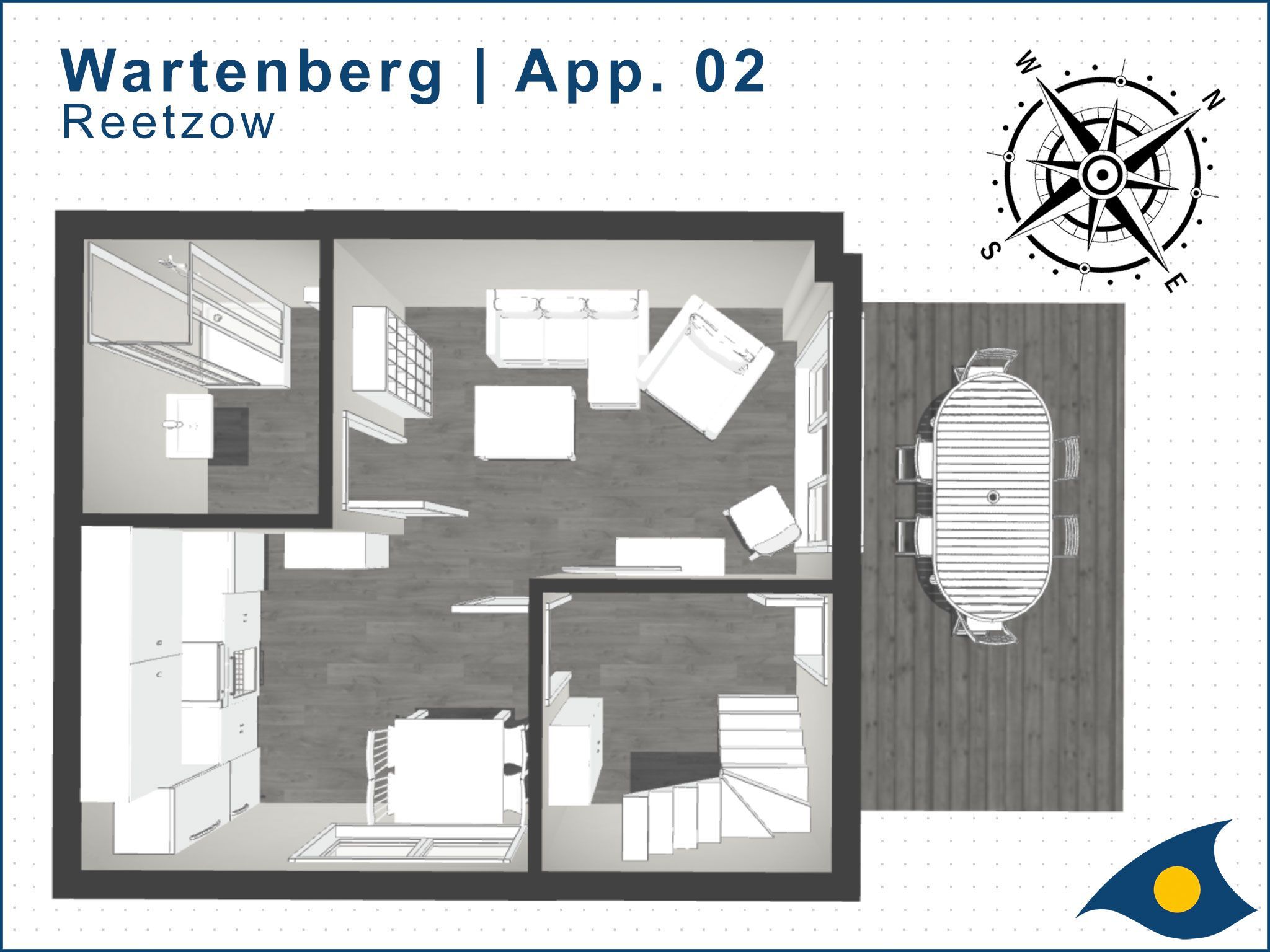 Die Ferienwohnung 02 befindet sich im Anbau vom Haus Wartenberg und liegt idyllisch am Ortsrand im Achterland der Insel Usedom. Hier können Sie auf etwa 67 qm Wohnfläche Ihren Urlaub entspannt genießen.
