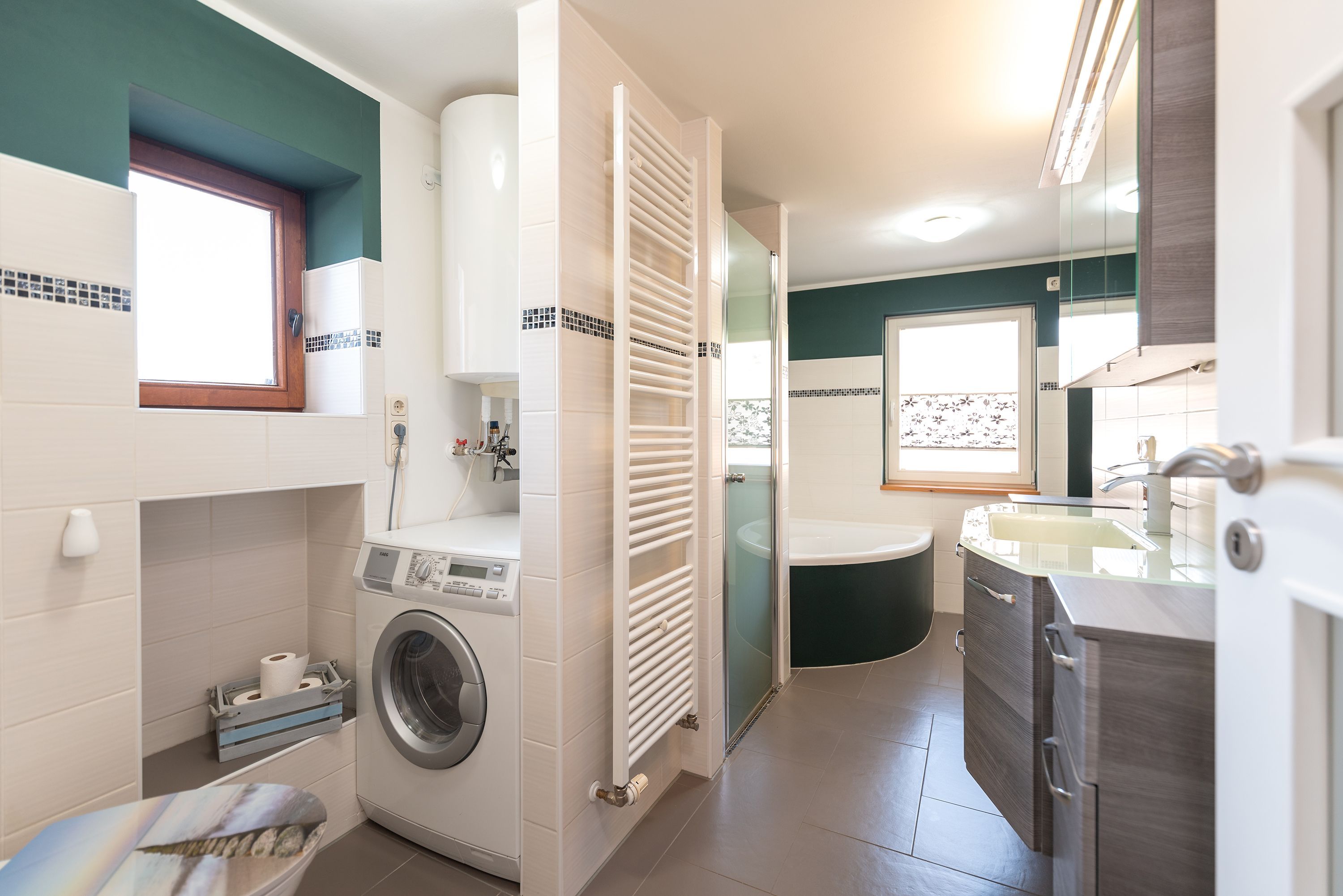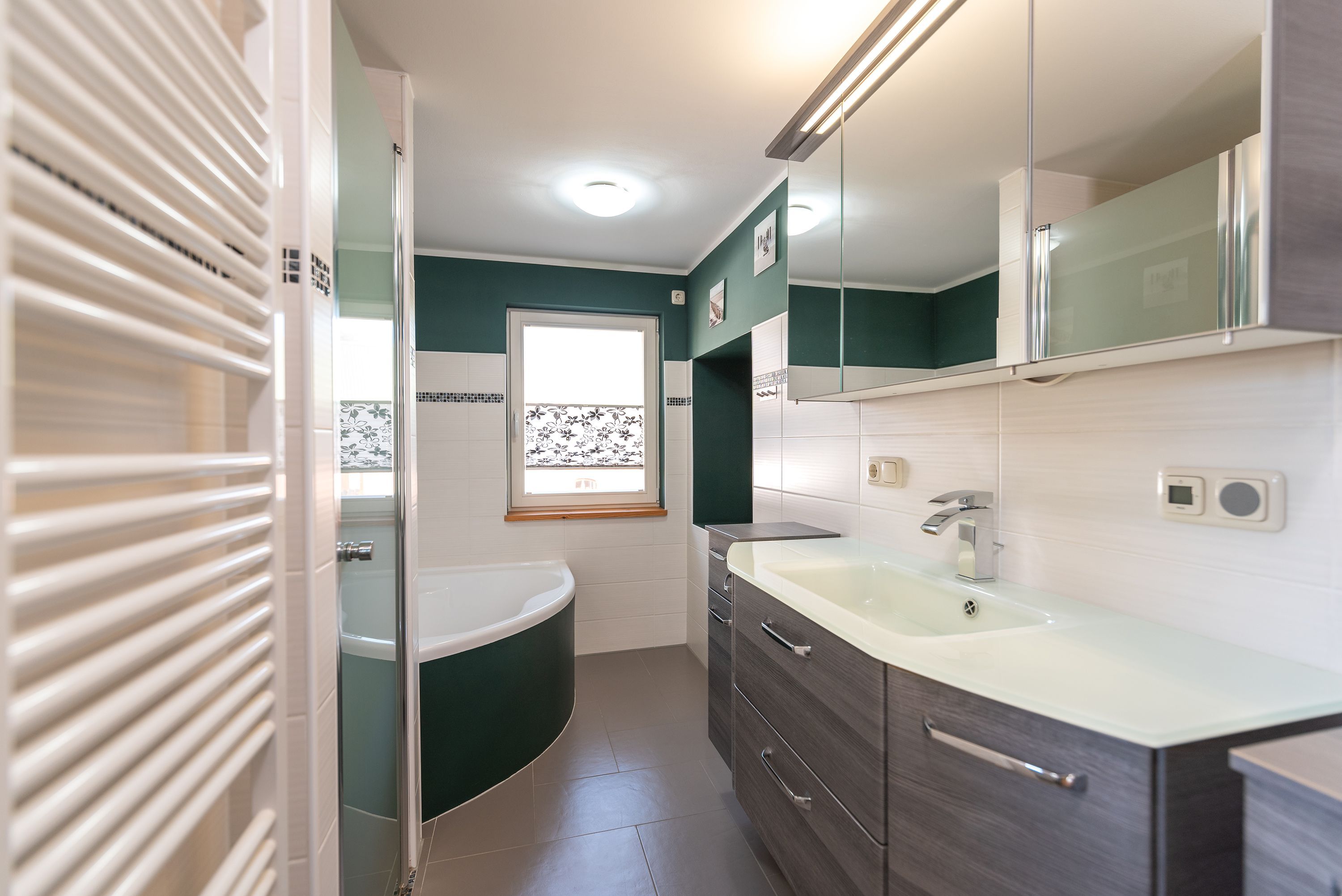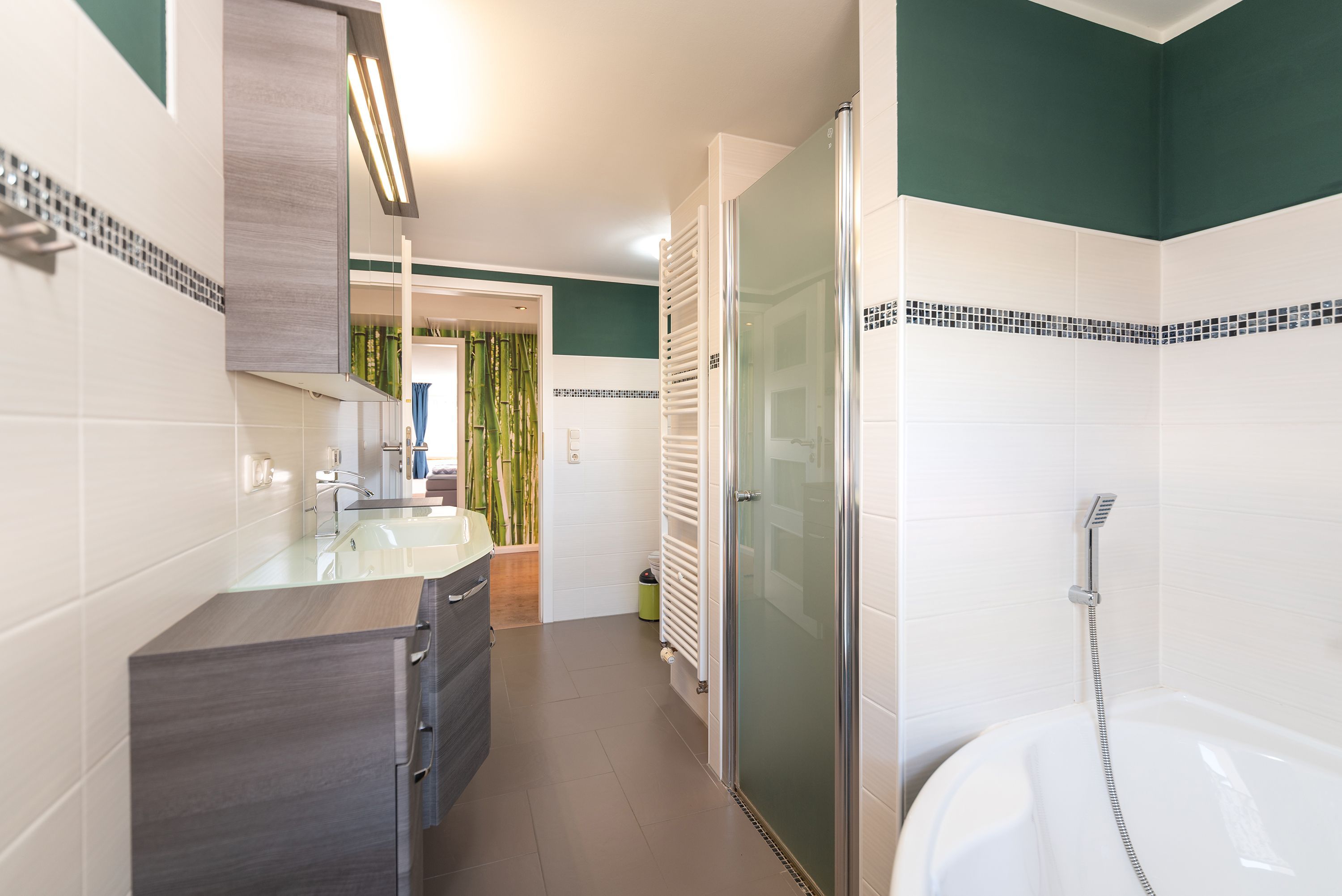 Das Badezimmer lässt mit einer Badewanne, einer separaten Dusche und einem WC keine Wünsche offen. Die Möglichkeit, zwischen einer schnellen Dusche und einem entspannenden Bad wählen zu können, bietet zusätzlichen Komfort und Flexibilität.