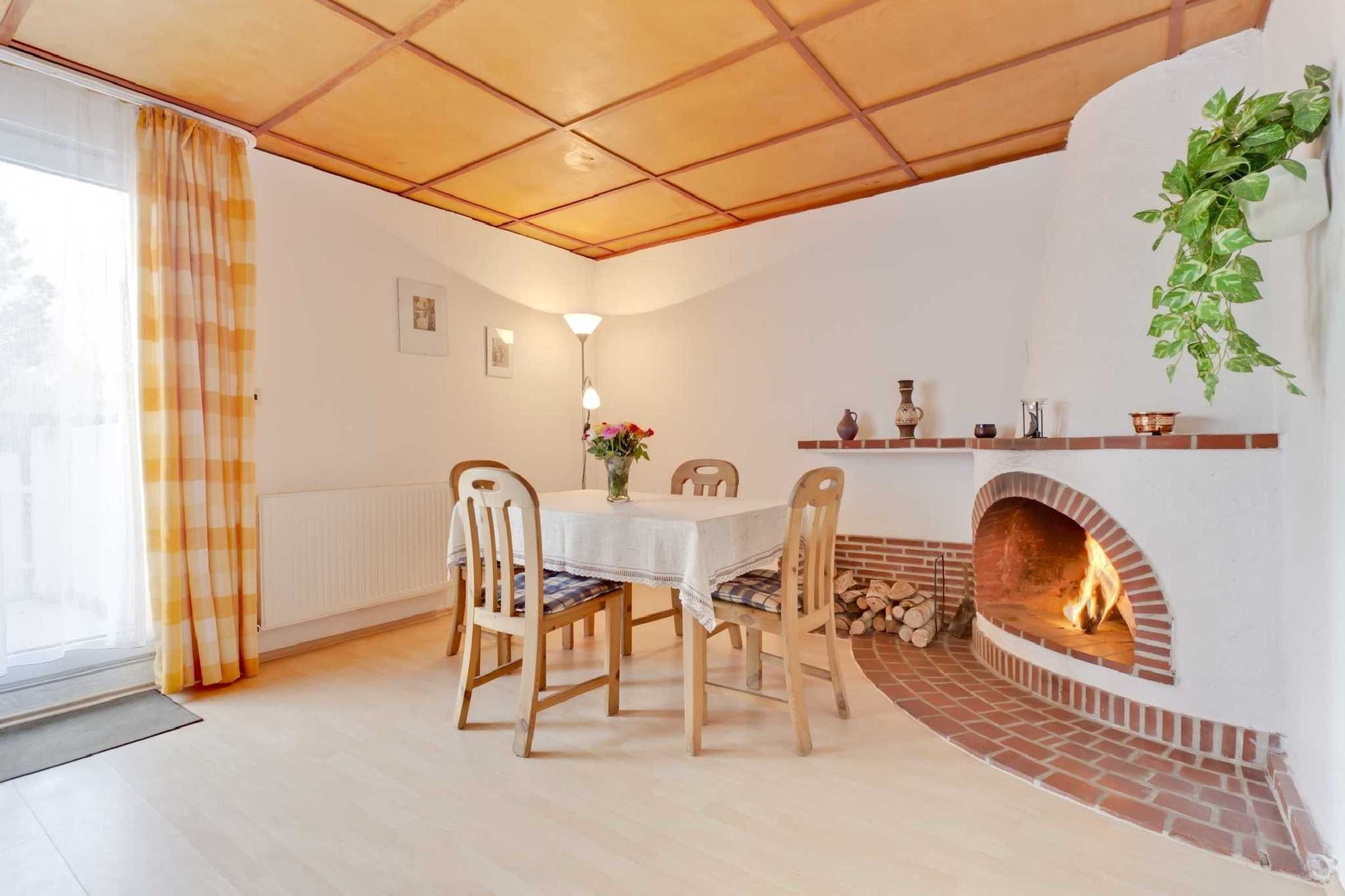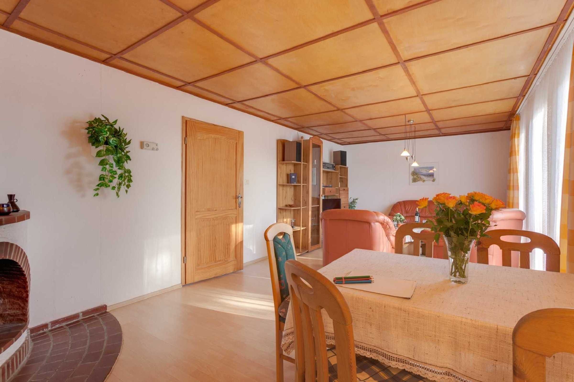 Das Haus verfügt über Wohnraum mit Kamin & Sitzecke sowie Eßecke, 2 Schlafräume (Doppelbett bzw. 3 Einzelbetten ), Küche (E-Herd, Backofen),