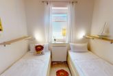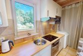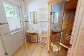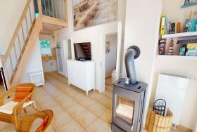 Der lichtdurchflutete Wohn- /Essbereich mit schönem Kaminofen grenzt an die separate, umfangreich ausgestattete Küche. Das Erste der insgesamt drei Schlafzimmer verfügt über ein Doppelbett, das zweite Schlafzimmer über zwei Einzelbetten und das letzte über ein gemütliches Doppelbett für Kinder auf dem Schlafboden. Im hellen Duschbad befindet sich eine Sauna.