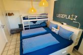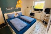 Angrenzend an den Wohnraum befindet sich das Schlafzimmer, das mit einem komfortablen Doppelbett und einem Etagenbett ausgestattet ist. Im Schlafzimmer befindet sich ein zweiter Fernseher. Die gesamte Wohnung ist liebevoll gefliest und strahlt eine behagliche Atmosphäre aus.