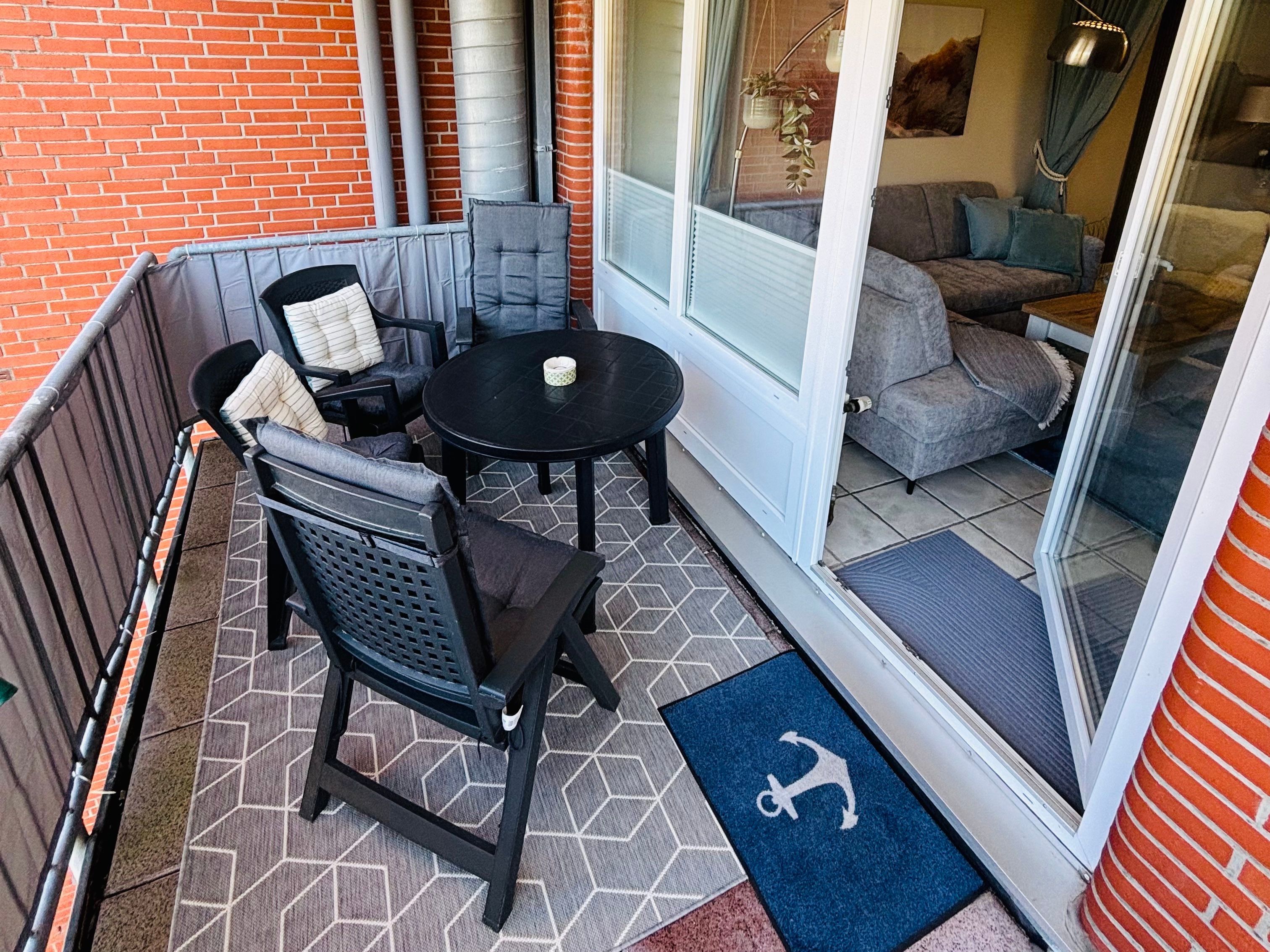 Ein weiteres Highlight ist der Balkon mit Sitzmöbeln perfekt, um die frische Nordseeluft zu genießen. Für Ihre Fahrräder steht ein separater Abstellraum zur Verfügung, inklusive einer praktischen Lademöglichkeit für E-Bikes.