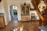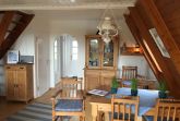 Der große Massivholztisch für bis zu 6 Personen lädt zum Essen und gemütlichen Beisammensein ein. Im großen Esszimmerschrank finden Sie zahlreich Besteck und Geschirr.
