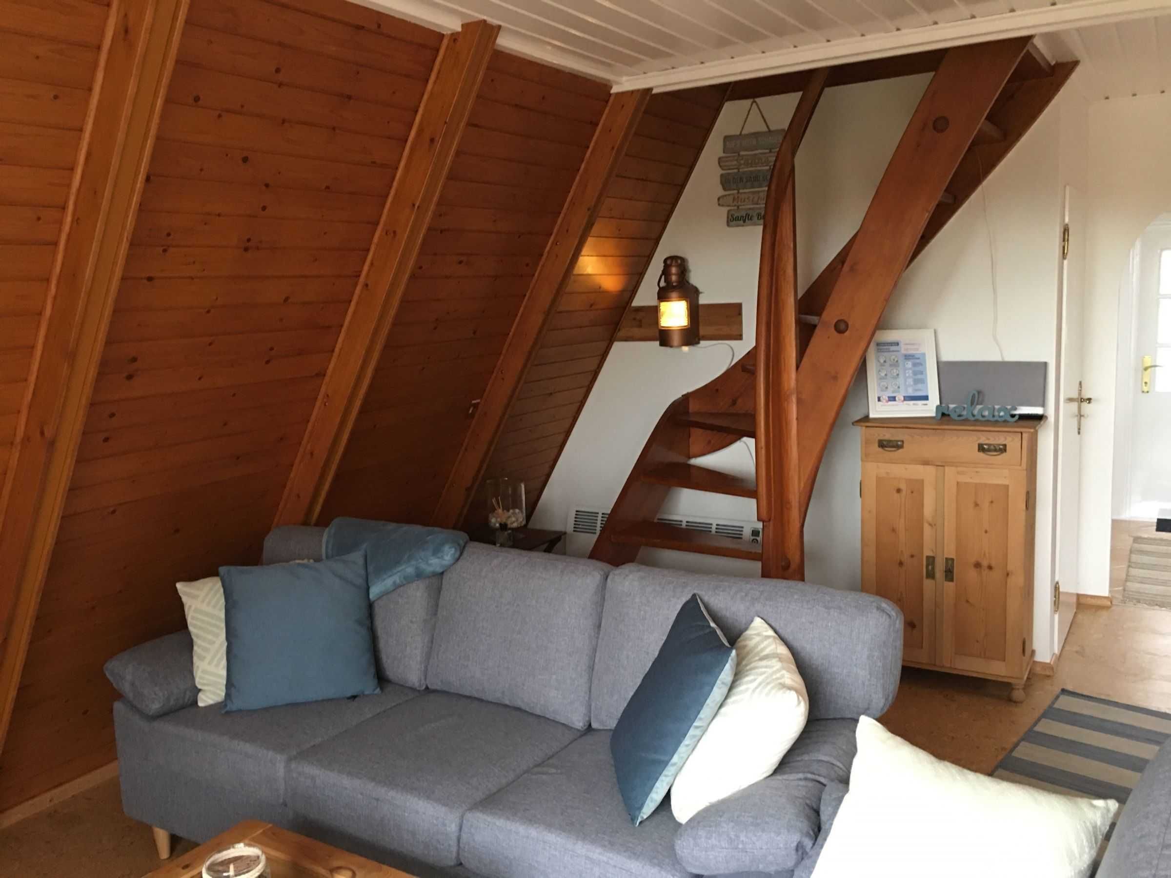 Das frei stehende Nurdachhaus mit 3 Zimmern und 65 qm Wohnfläche über 2 Ebenen bietet viel Platz für bis zu 4 Personen. Im gemütlichen Wohn- und Essbereich erwartet Sie ein komfortables Ambiente mit zwei Sofas, einem Flachbild-TV und indirekter Beleuchtung. Eine kleine Auswahl an Büchern und Gesellschaftsspielen finden Sie in der Kommode unter dem Fernseher.