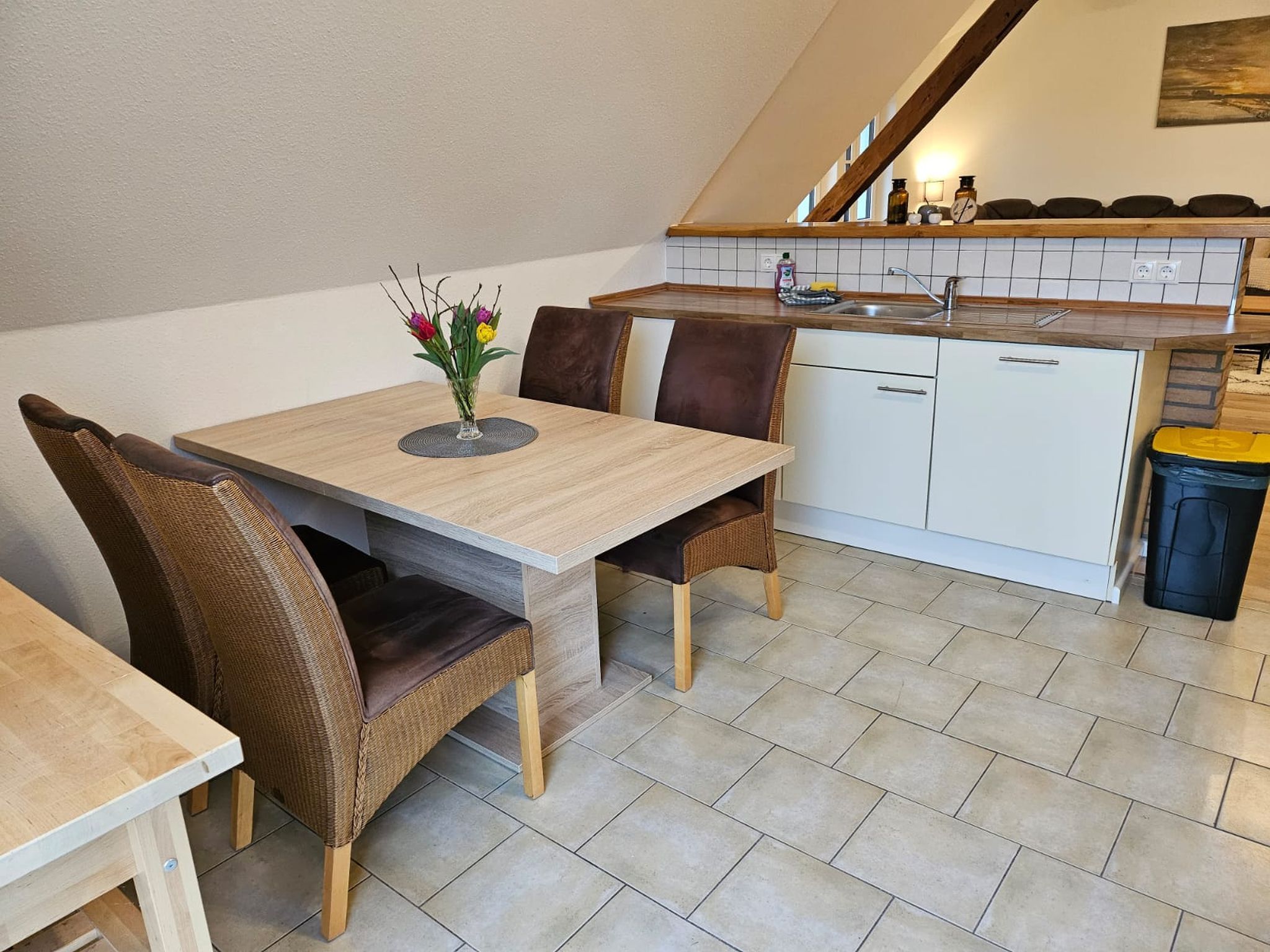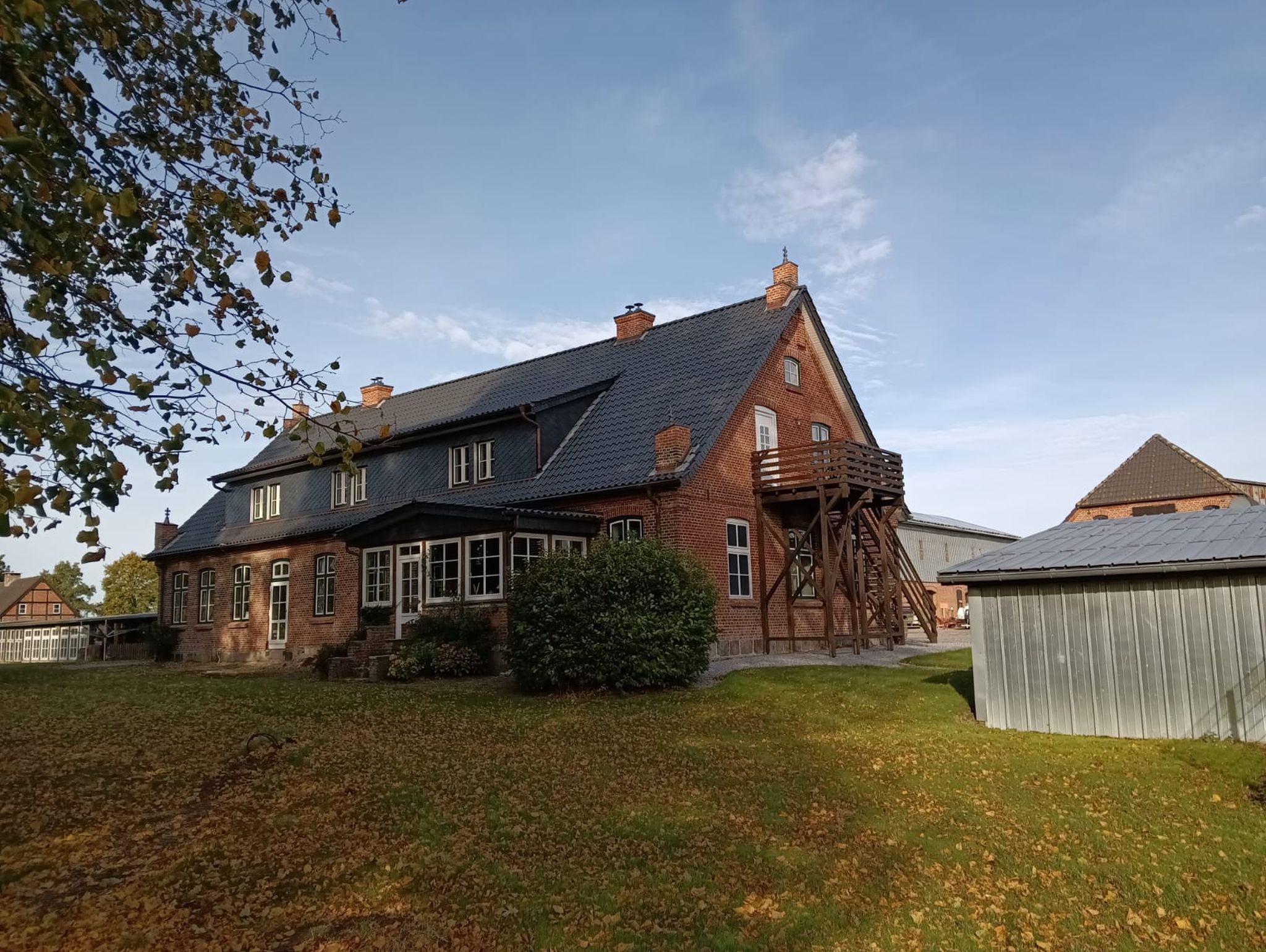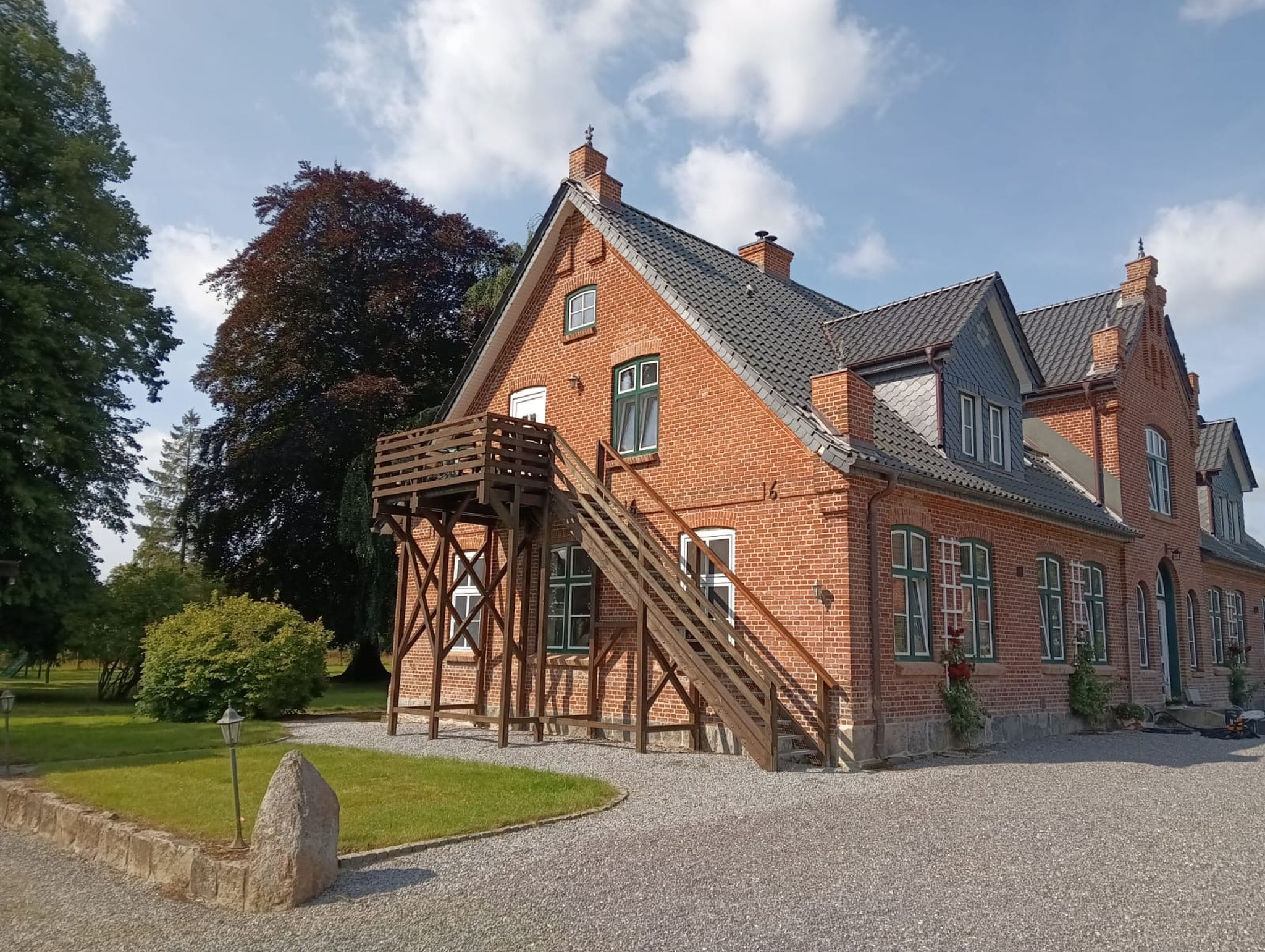Die Ferienwohnung Mariannenhof für bis zu 4 Personen (plus 1 Kleinkind) befindet sich im Obergeschoss des Herrenhauses und ist über eine Außentreppe und die Dachterrasse erreichbar. Die Wohnung hat ein sehr behagliches Ambiente und bietet einen schönen Ausblick auf die Landschaft.