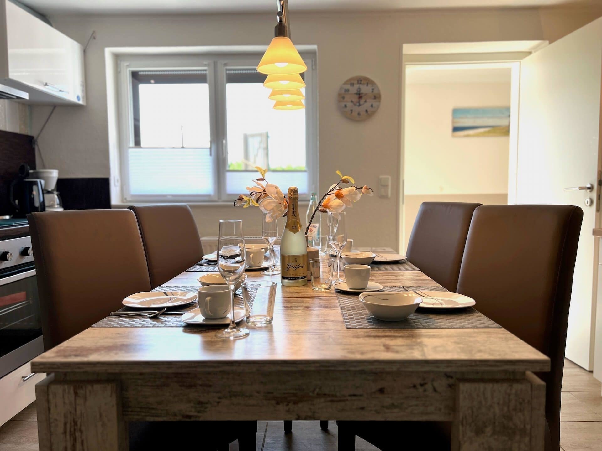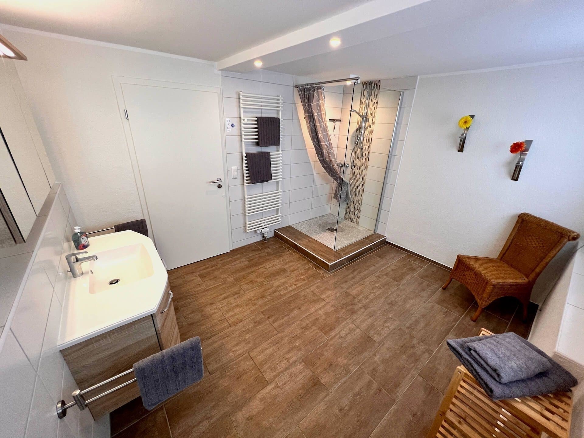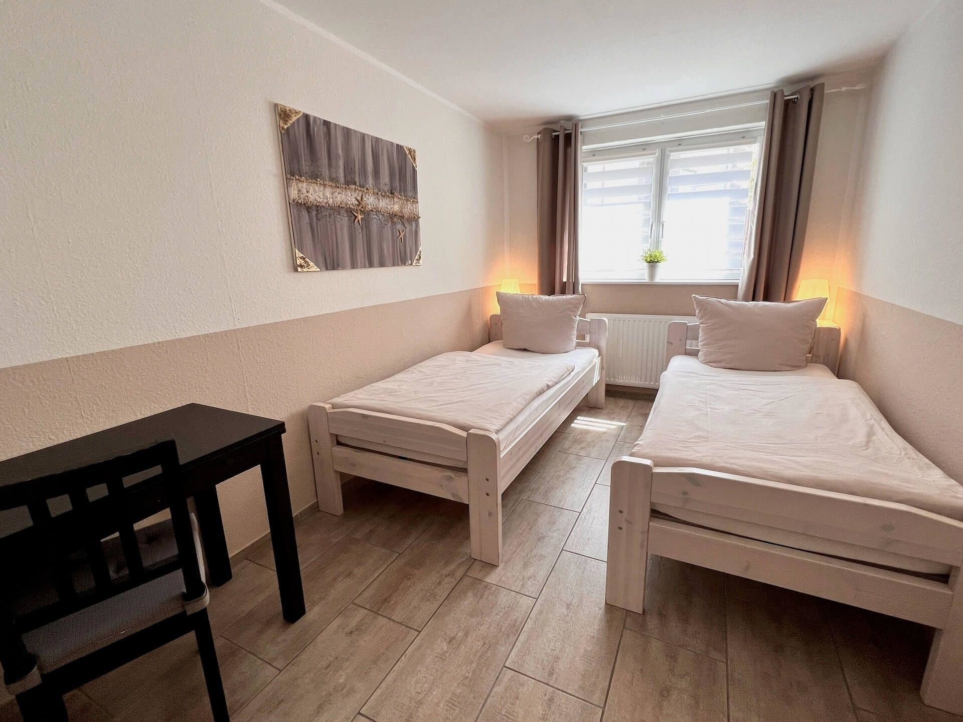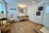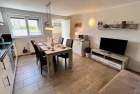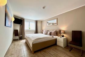 Trotz der Lage im Souterrain ist die Wohnung hell und lichtdurchflutet. Durch die moderne und stilvolle Einrichtung ist sie ein echter Hingucker und beliebt bei unseren Stammgästen. Ein geräumiges Schlafzimmer mit Doppelbett beschert Ihnen erholsame Nächte. Ein weiteres Schlafzimmer mit kleinem Schreibtisch und 2 Einzelbetten beherbergt den Rest der Familie. Das große Badezimmer ist nicht nur modern ausgestattet, es verfügt zudem über eine Fußbodenheizung.
