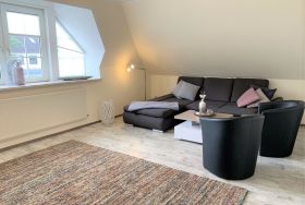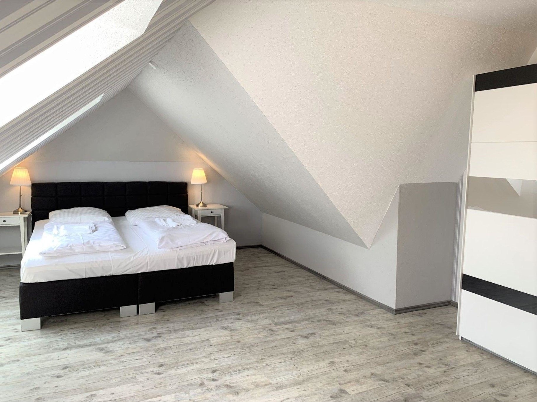 Frisch renovierte 120m² große und modern eingerichtete Dachgeschosswohnung. Zu dieser Wohnung gehört ein kleines Stück Terrasse an der Seite des Hauses.