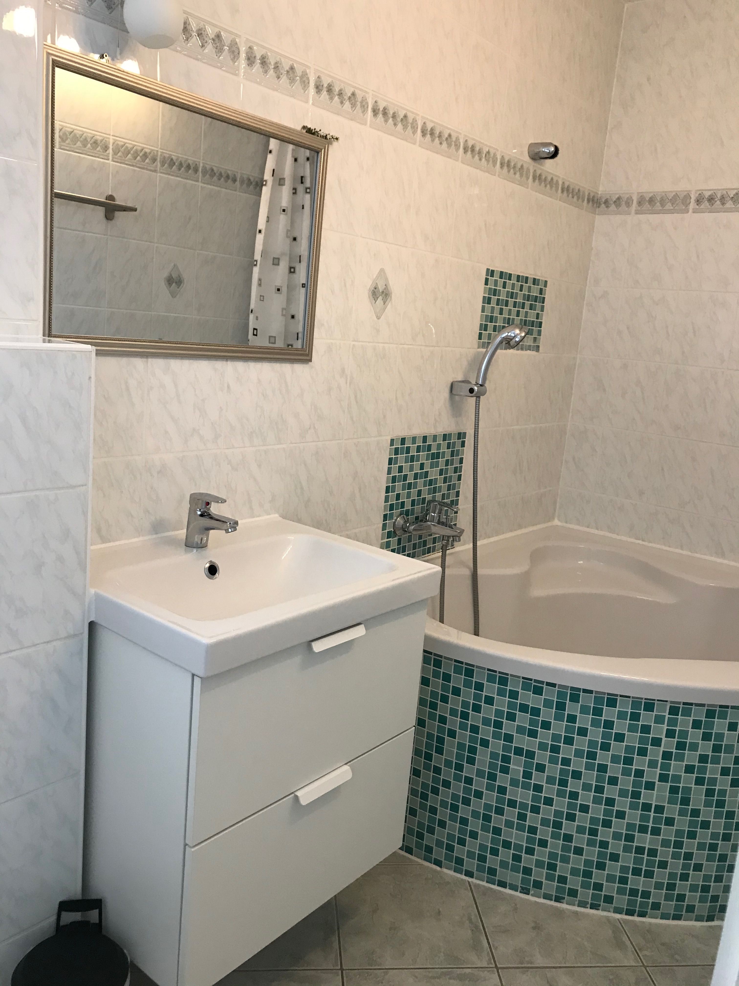 Im Erdgeschoss befindet sich die vollausgestattete Küche mit Geschirrspüler, Backofen, Mikrowelle, Herd und kleinem Essbereich, der einladende Wohnbereich mit Ecksofa, Sessel und TV, das gemütliche Esszimmer, ein Schlafzimmer mit Boxspringbetten, ein Bad mit Dusche und ein großes Bad mit Eckbadewanne.