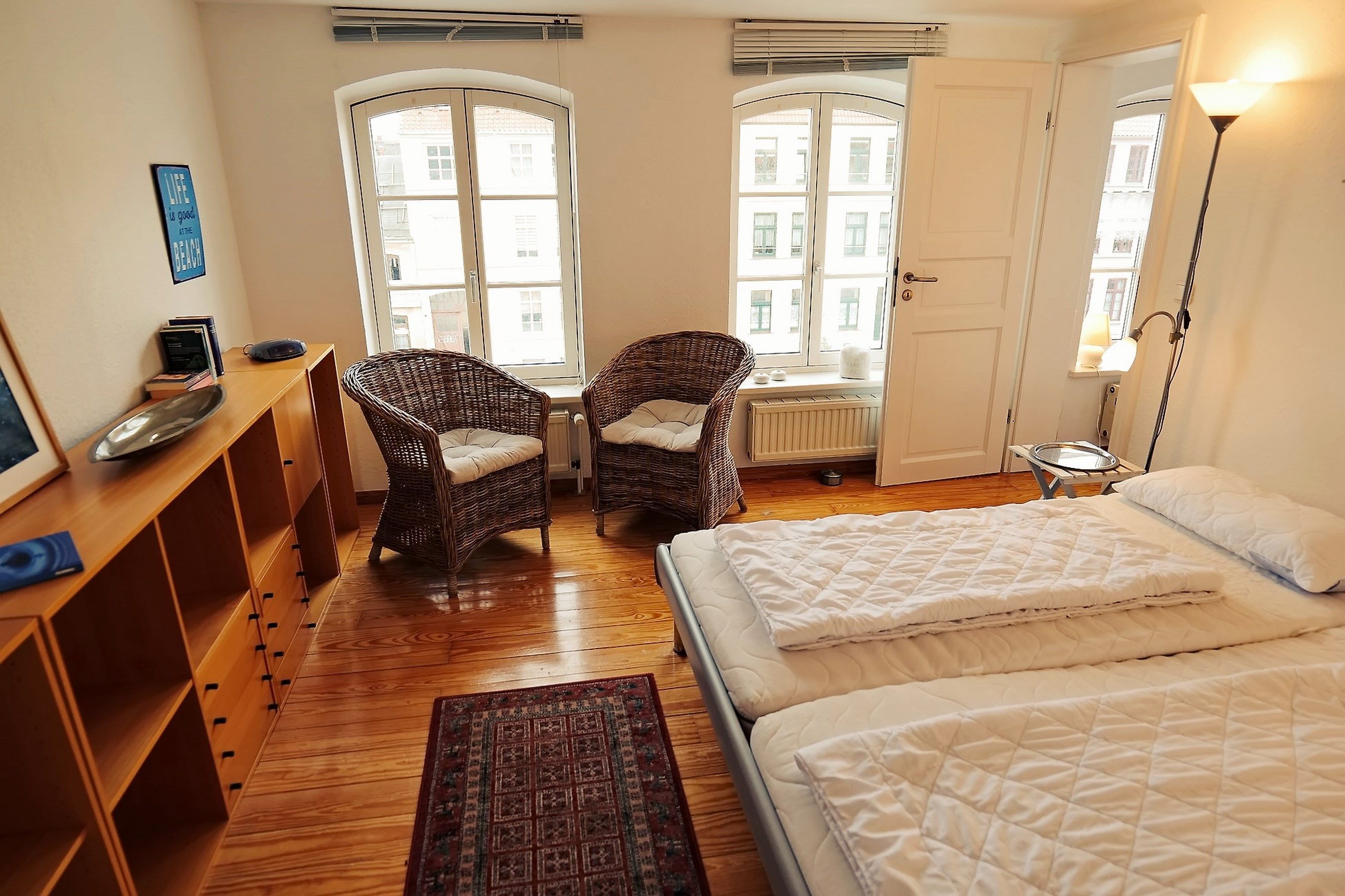 Schöne Ferienwohnung ( 65 qm, 1. OG) für 3-4 Pers. im vollsanierten und liebevoll eingerichteten Haus in der Wismarer Altstadt. 5 Geh-Minuten zum Westhafen und Alten Hafen. 10 Min. zum Bahnhof. Kleiner Hof mit Fahrradständer. Kostenloser Parkplatz Richtung Westhafen nur 3 Gehminuten entfernt. Top-Lage: 3 Min. zum Alten Hafen, 5 Minuten zum Marktplatz der Altstadt.