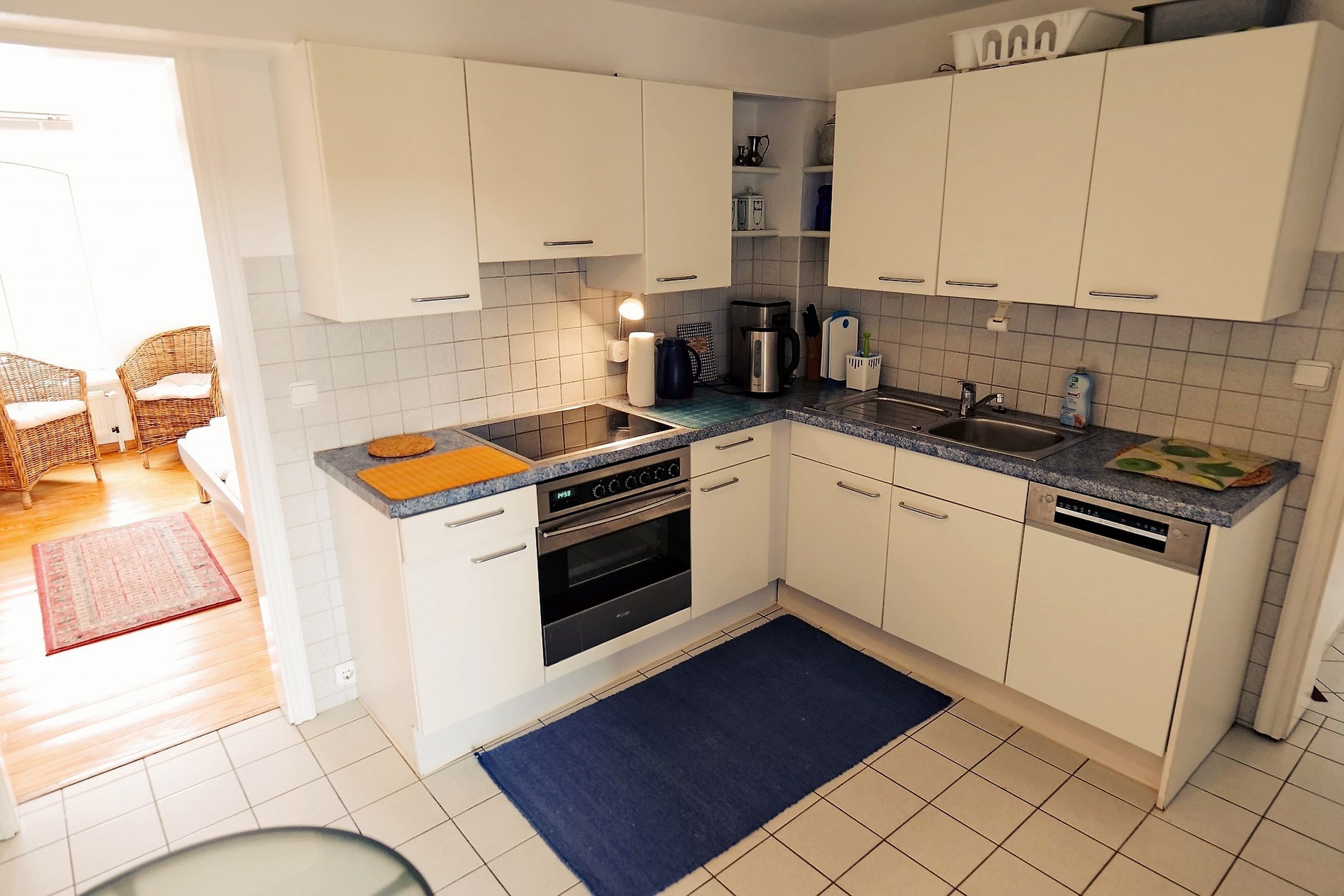 - Küche vollausgestattet u.a. mit Kühlschrank mit Gefrierteil, Geschirrspüler, Backofen, Ceranfeld, Kaffeemaschine, Geschirr, Besteck, Gläser uvm.