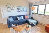 Es empfängt Sie ein heller und modern eingerichteter Wohnbereich, in dem ein Komfortsofa nach Umwandlung zum Schlafsofa- zwei zusätzliche Schlafgelegenheiten ( 1,40 x 2,00m) bietet.
