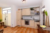 Der Wohn-/Essbereich verfügt über zwei direkte Zugänge zur umlaufenden Terrasse und ist mit hochwertigen Möbeln bestückt. Eine viersitzige Essgarnitur, ein großes Sideboard mit 40 Zoll Flachbild-Fernseher und eine Multifunktions-Couchgarnitur garantieren erholsame Stunden mit der Familie. Eine alle Bequemlichkeiten bietende, voll ausgestattete Küche rundet den Komfort des Apartments ab.