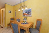 Die Essecke bietet 4 bequeme Stühle und einen ausziehbaren Tisch, somit steht einer ausgedehntem gemeinsamen Mahlzeit oder einem gemütlichen Spielabend nichts im Wege.
