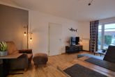 • 1 Wohnzimmer mit 1 Schlafsofa (140 x 200 cm), 1 Hocker, 1 Lese-Sessel mit Hocker, 1 Couchtisch, 1 Esstisch mit Platz für 4 Personen, einem Flachbild-Fernseher und 1 TV - Schrank.
